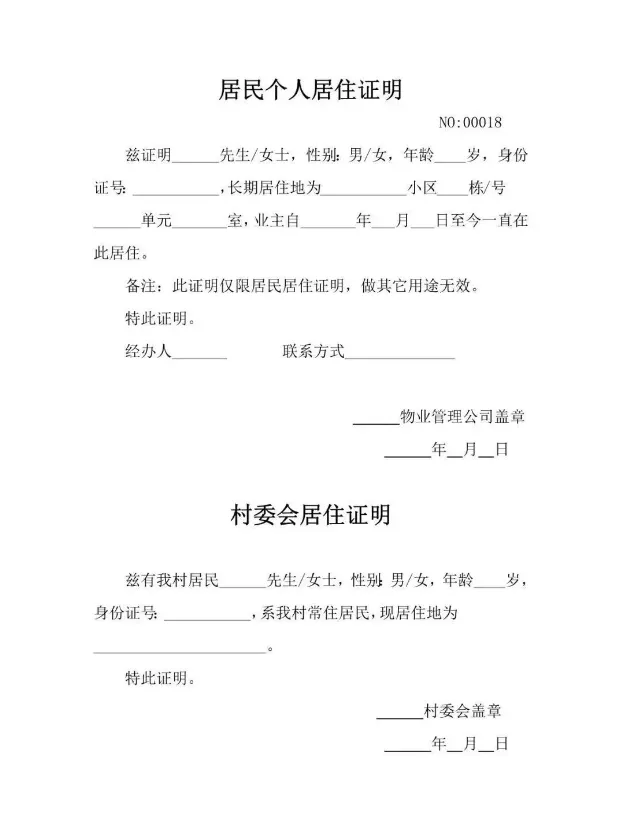 今天分享的是物业/居委会/村委会居住证明模版合集