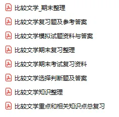 今天分享的资料是「0900-比较文学」电子版+学习笔记+知识点总结+期末考试重点+复习资料+习题集及答案+名词解释+历年真题试卷及答案+题库及答案+复习重点+思考题及参考答案+公式总结+考试重点基础题+知识总结+高清PDF可打印+免费分享!