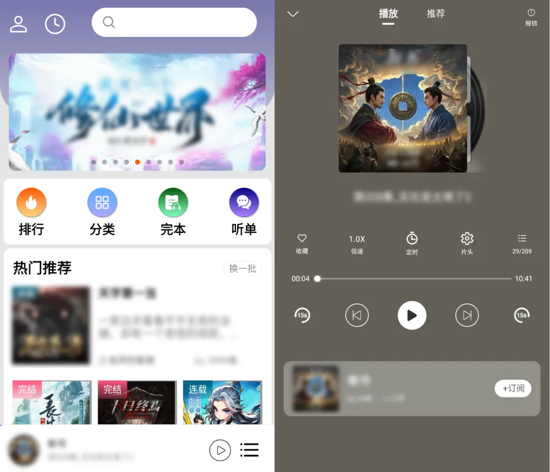 想听的全都有,男频爽文、女频甜宠、悬疑纪实、科幻文学……一键即播,永久免费,告别广告,听书就该如此纯粹。