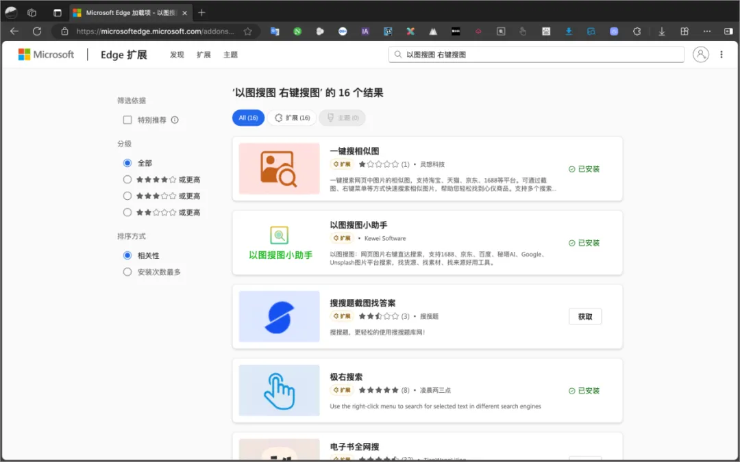 Microsoft Edge浏览器,“以图识图”扩展安装入口