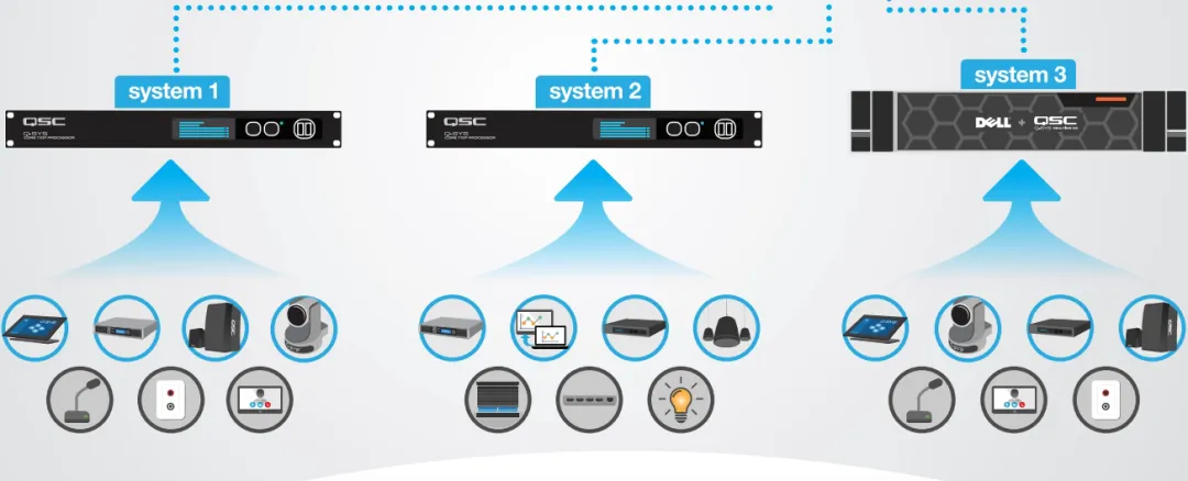 与ZOOM Rooms以及Teams Rooms一样,Q-SYS与Google Meet的电脑连接通过一条USB线实现