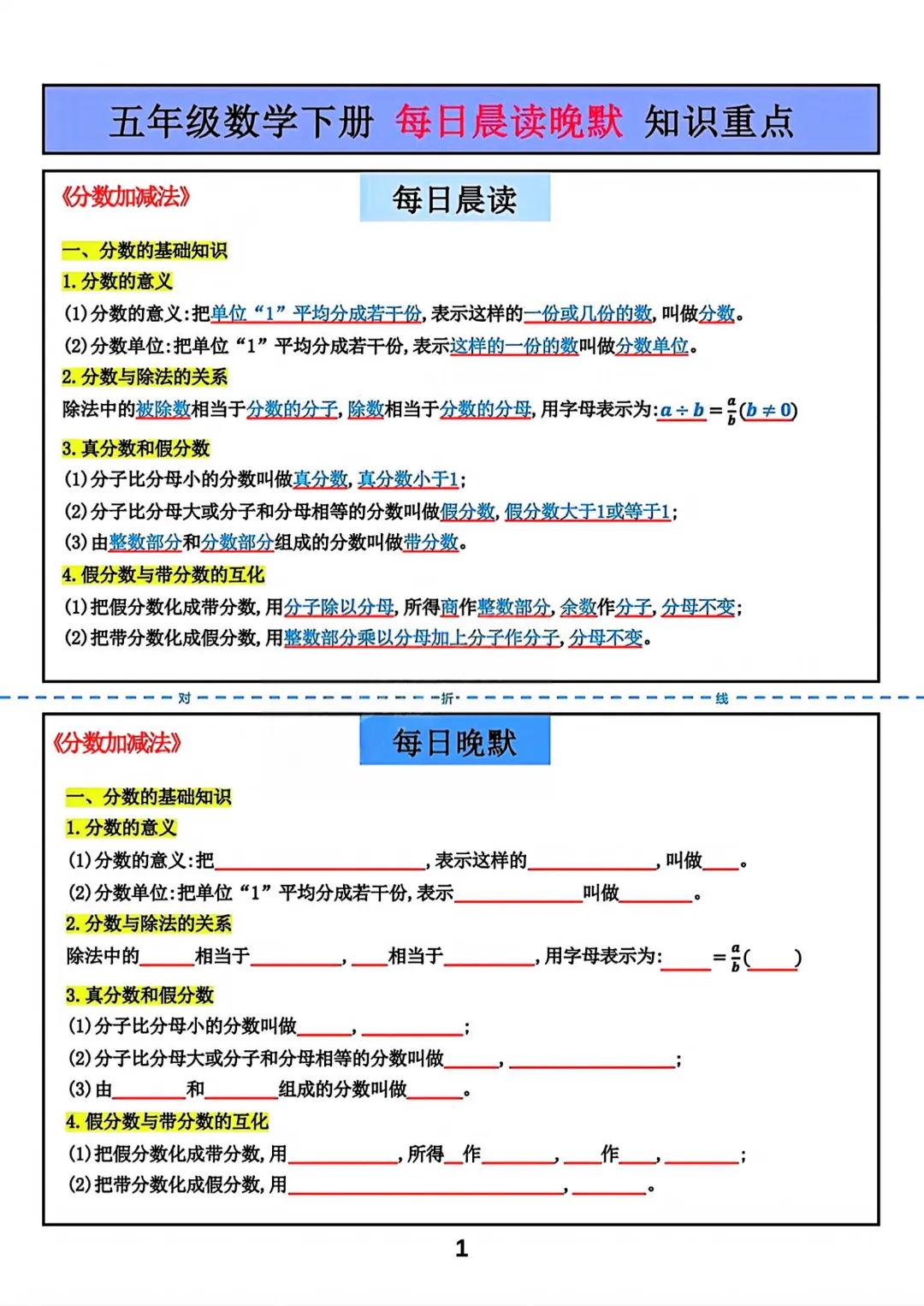 今天给大家分享的是:【五年级下册数学】【北师大版】每日晨读晚默知识重点丨完整高清电子版可打印