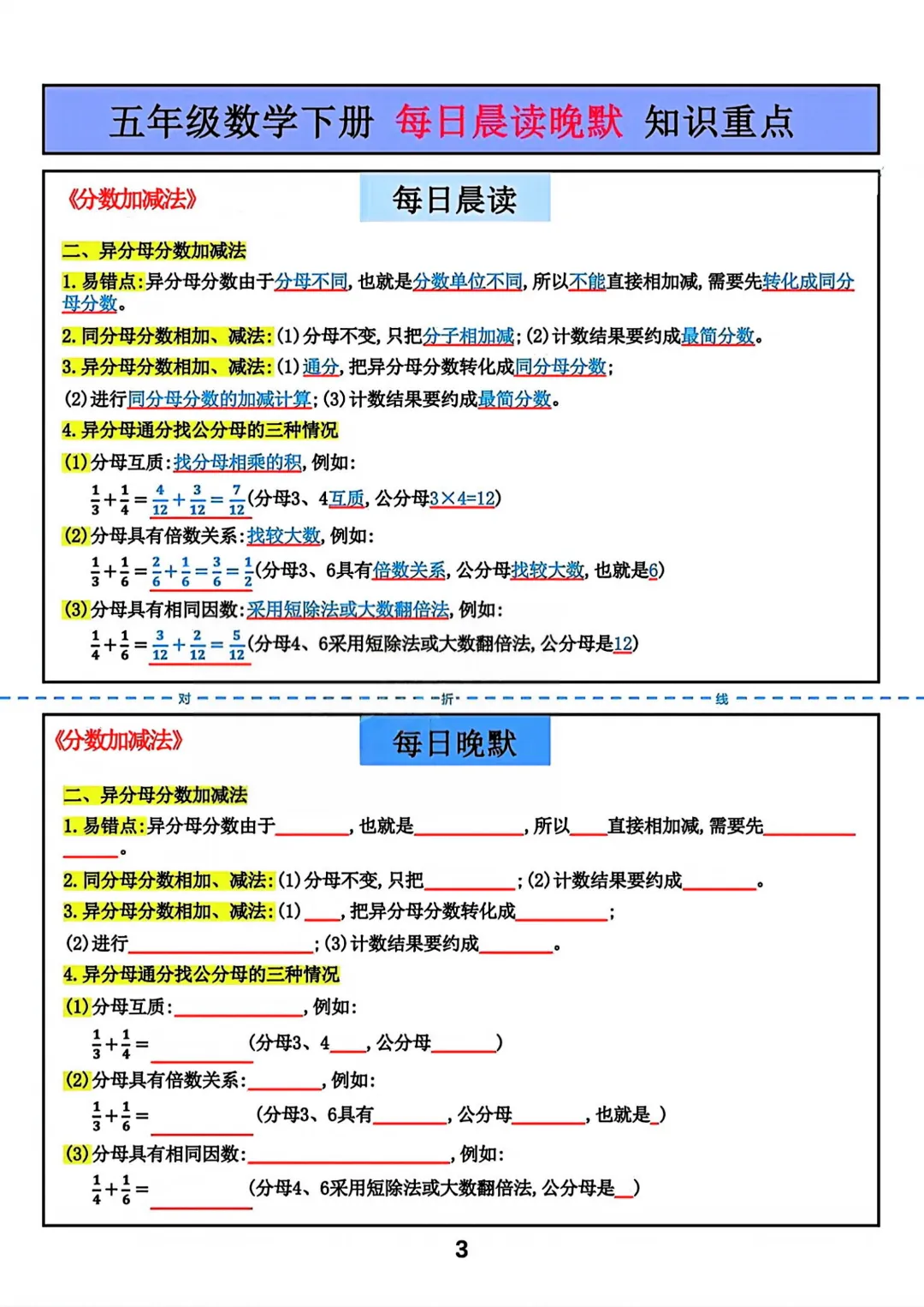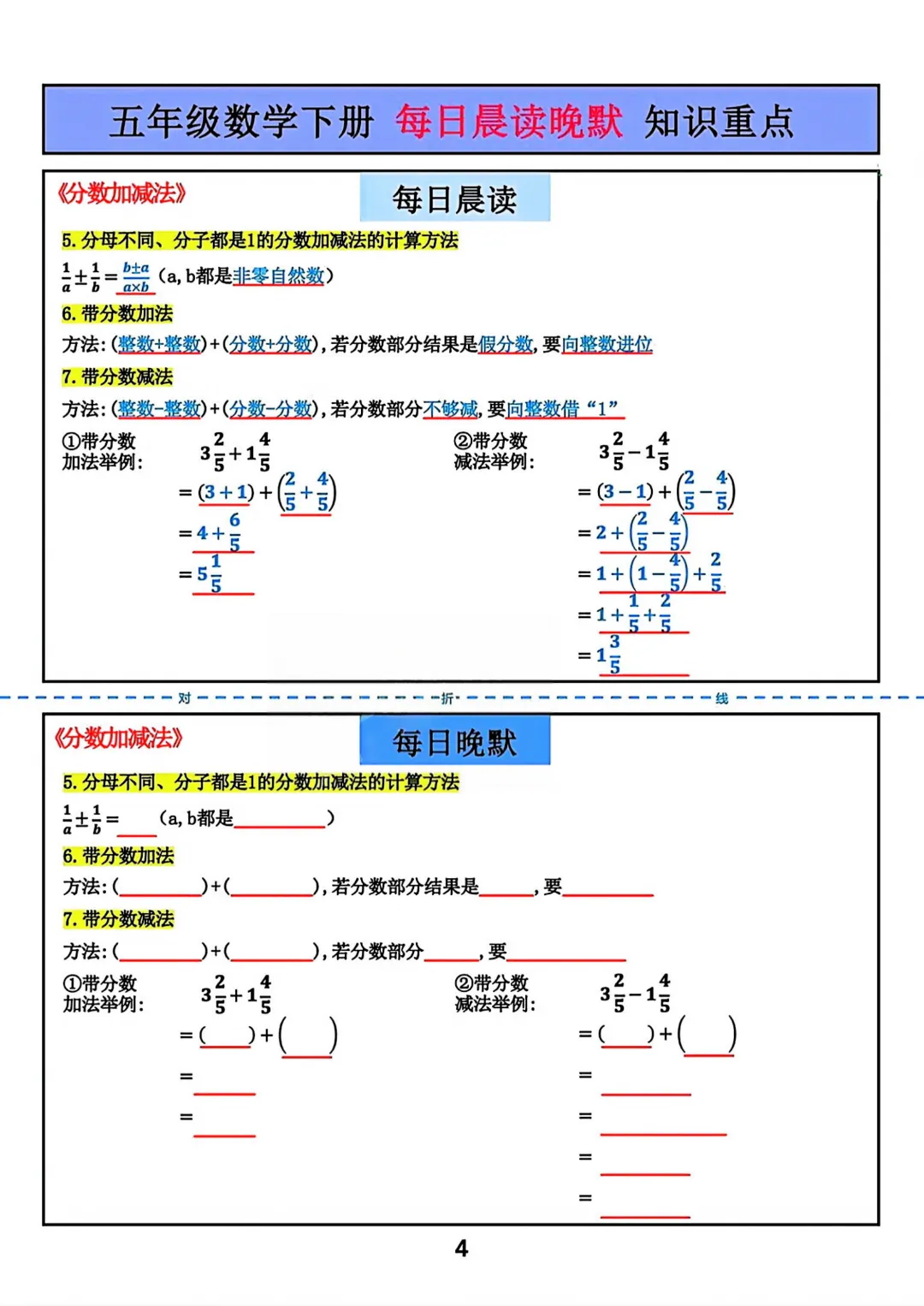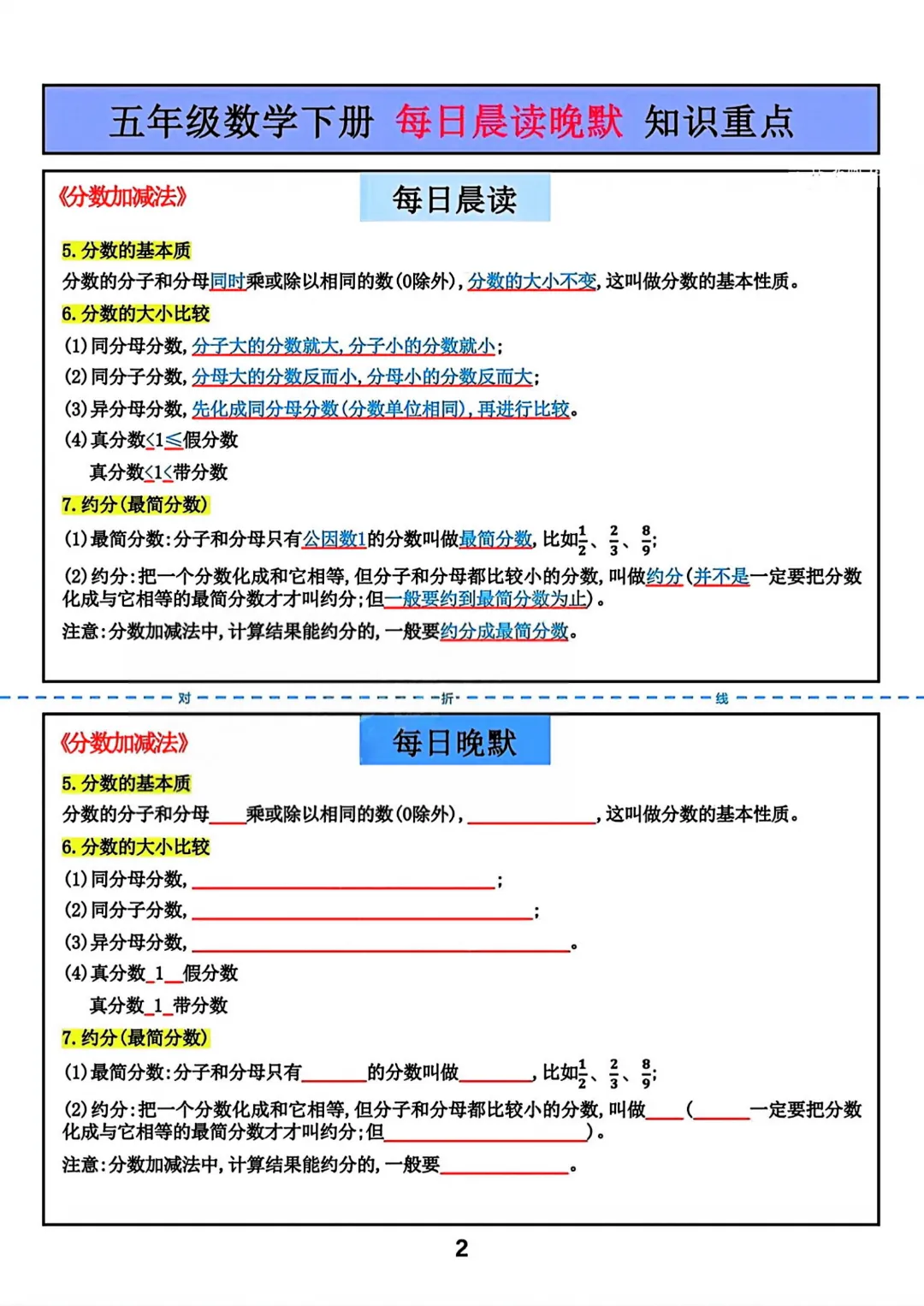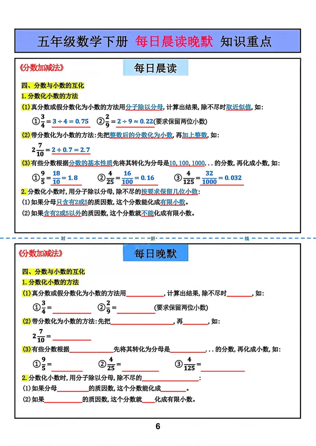 【五年级下册数学】【北师大版】每日晨读晚默知识重点丨完整高清可打印
