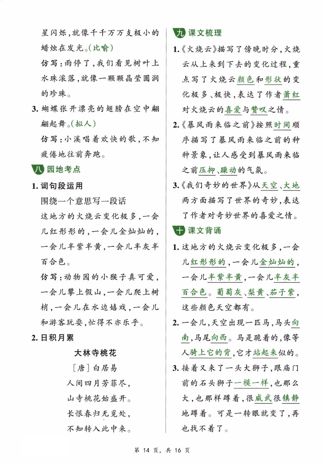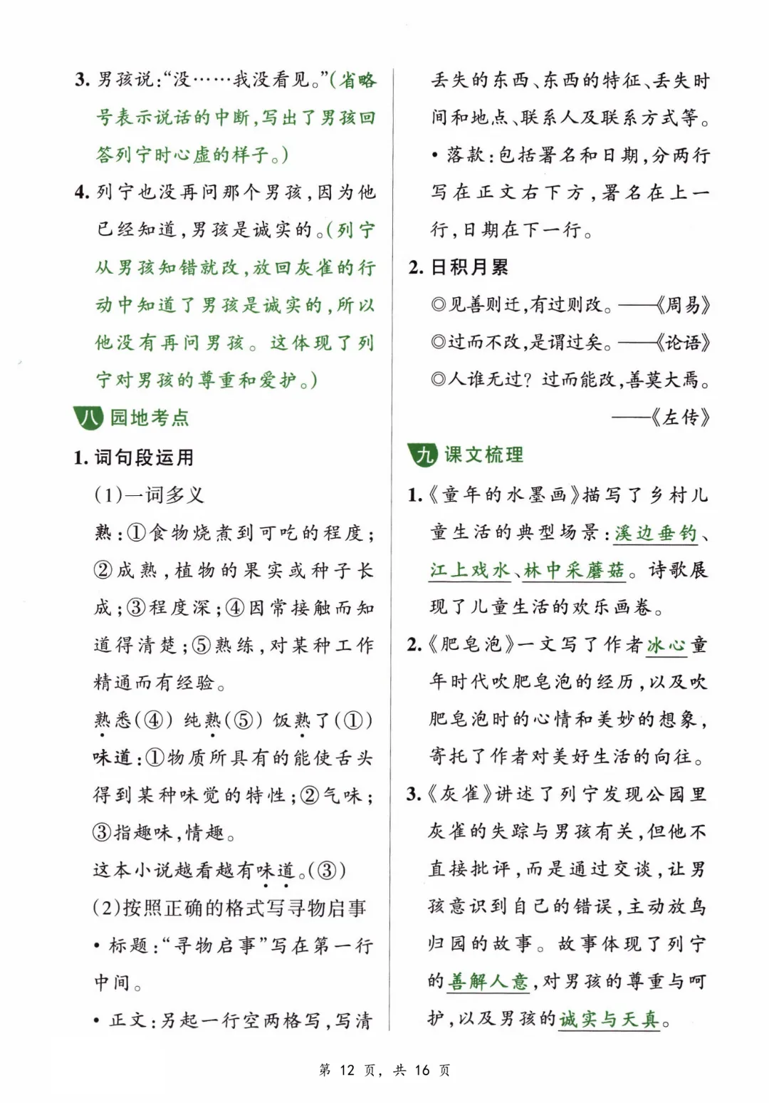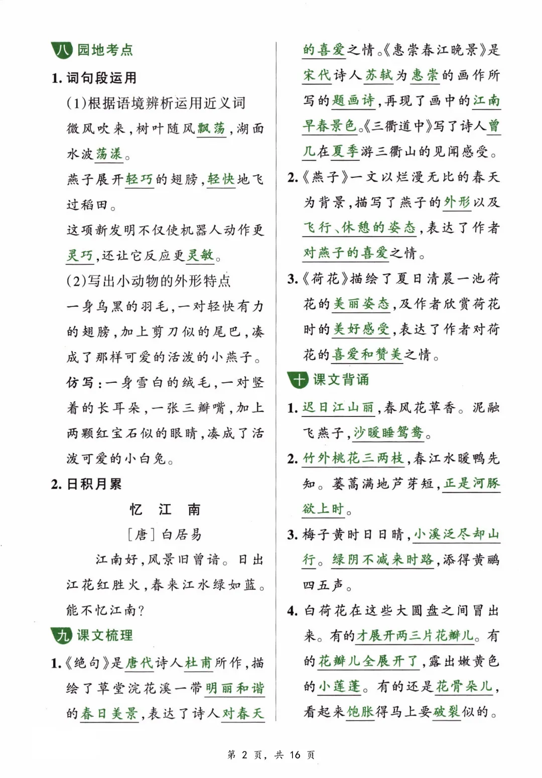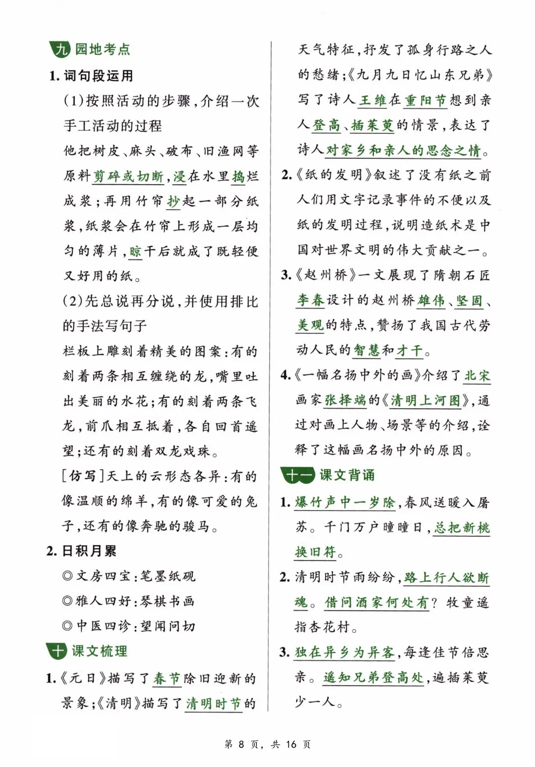 【三年级下册语文】【人教部编版】1-8单元必背知识汇总共16页丨完整高清可打印