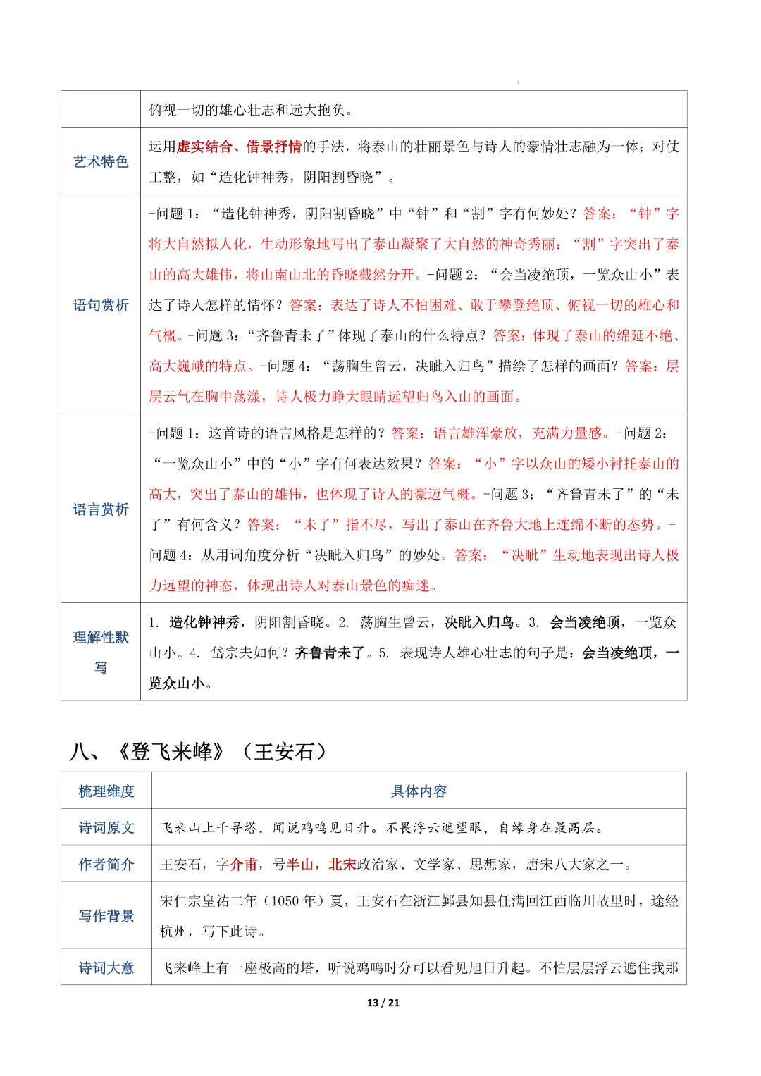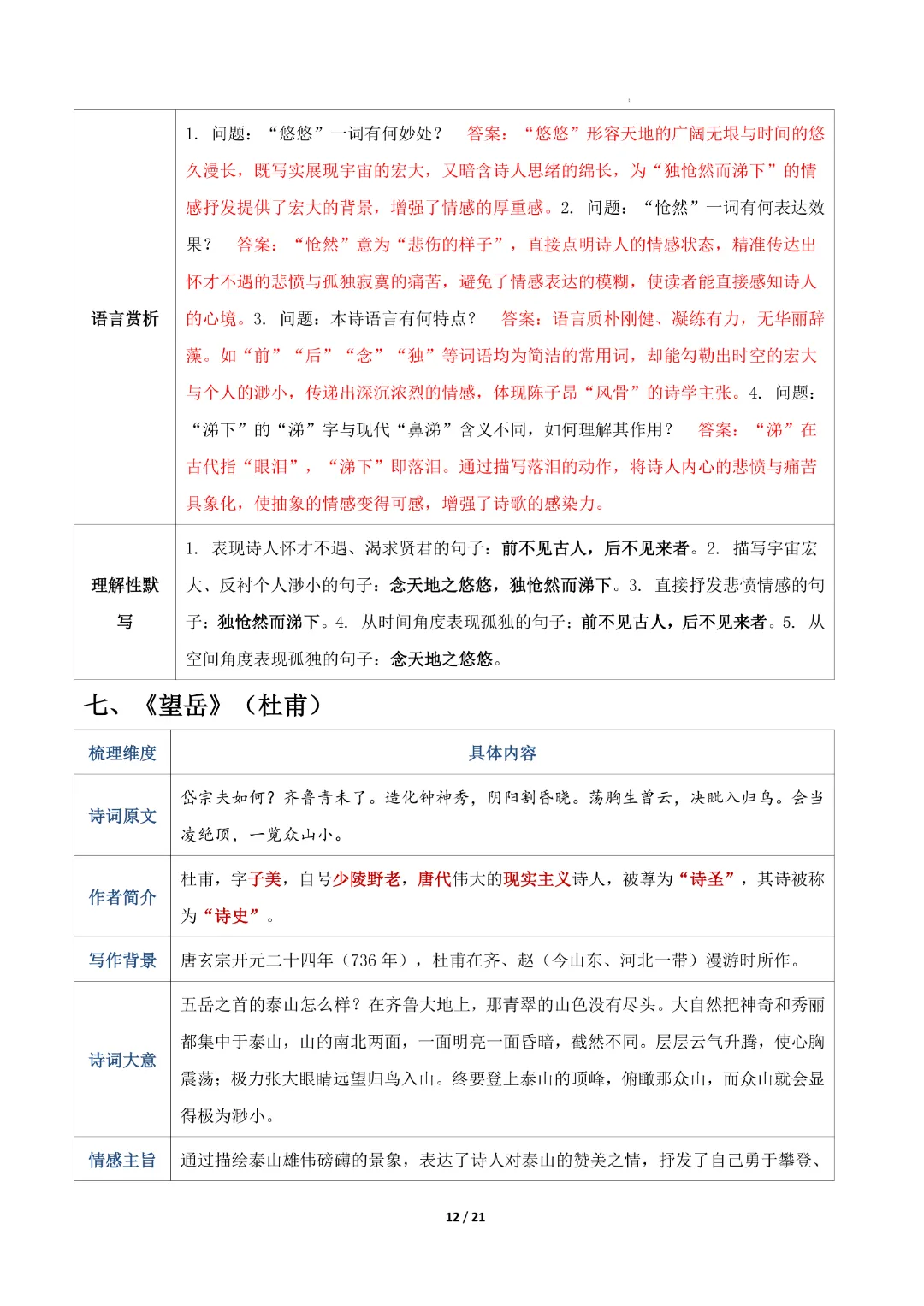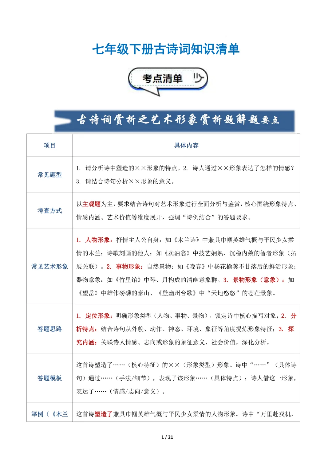 【七年级下册语文】【人教部编版】古诗词知识清单|完整高清可打印
