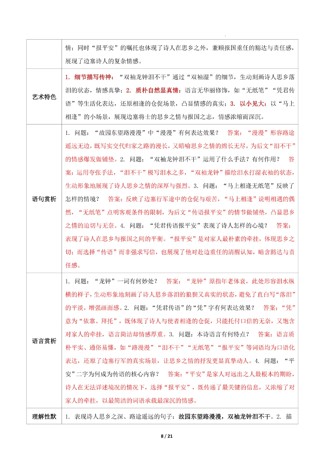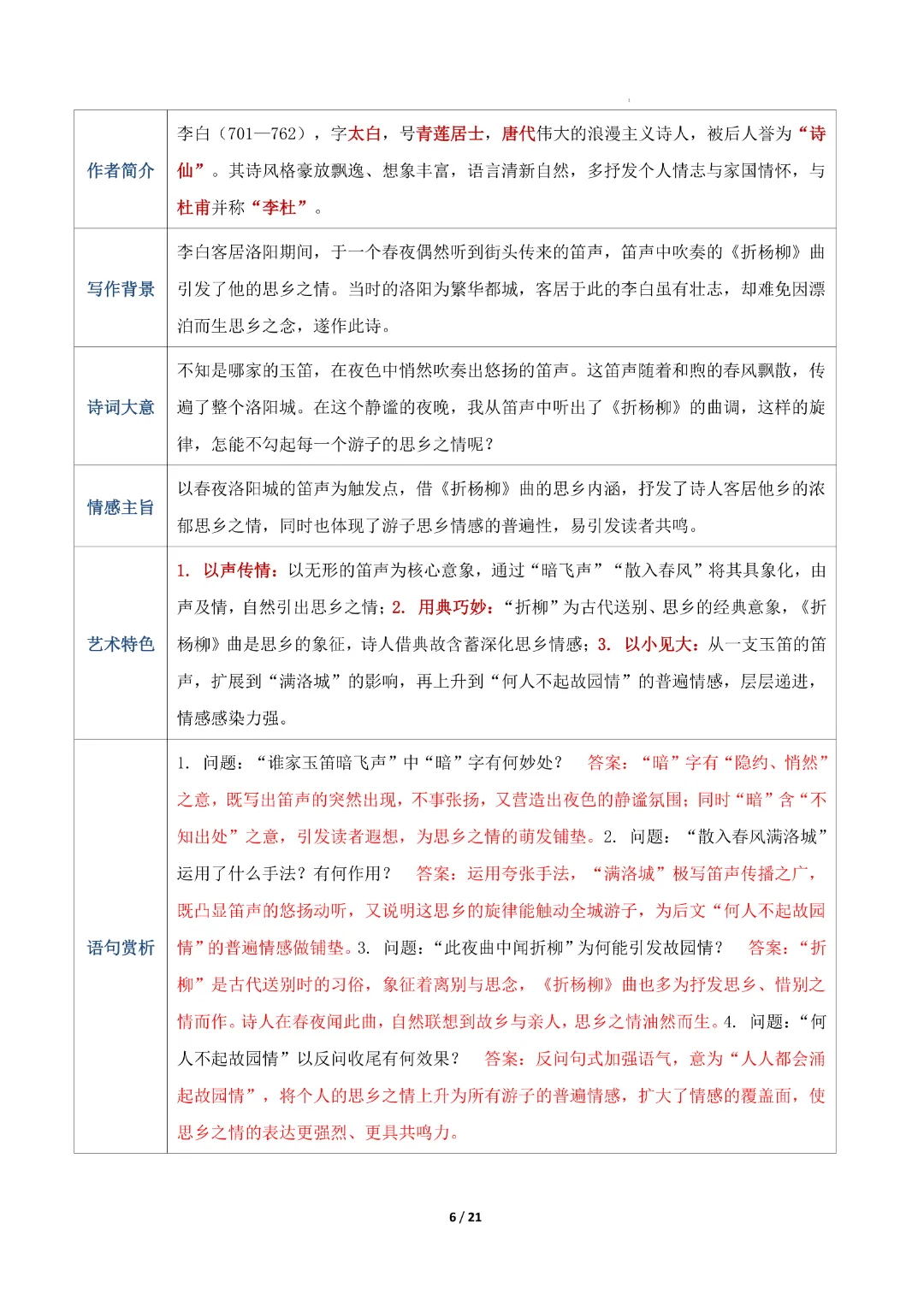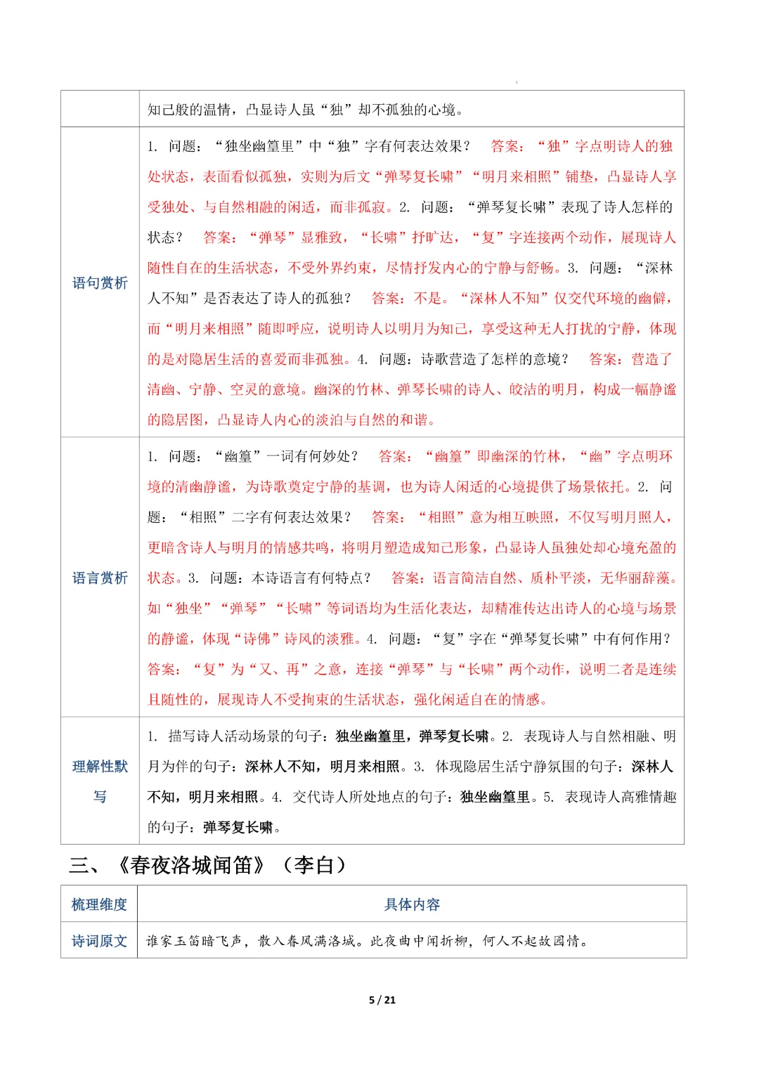 【七年级下册语文】【人教部编版】古诗词知识清单|完整高清可打印
