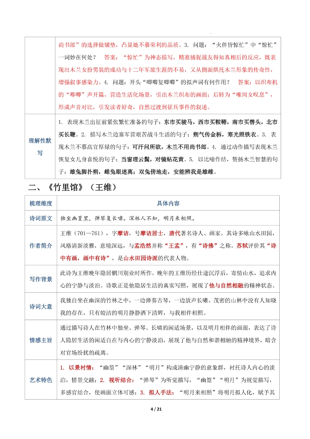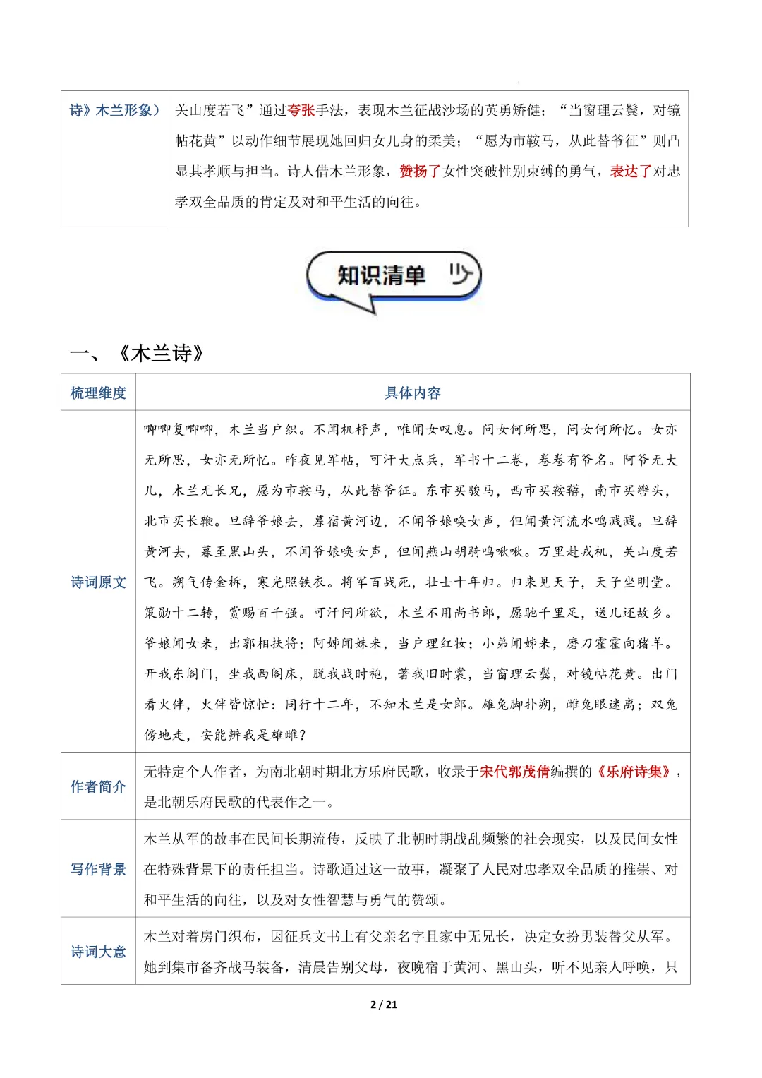 今天给大家分享的是:【七年级下册语文】【人教部编版】古诗词知识清单|完整高清电子版可打印