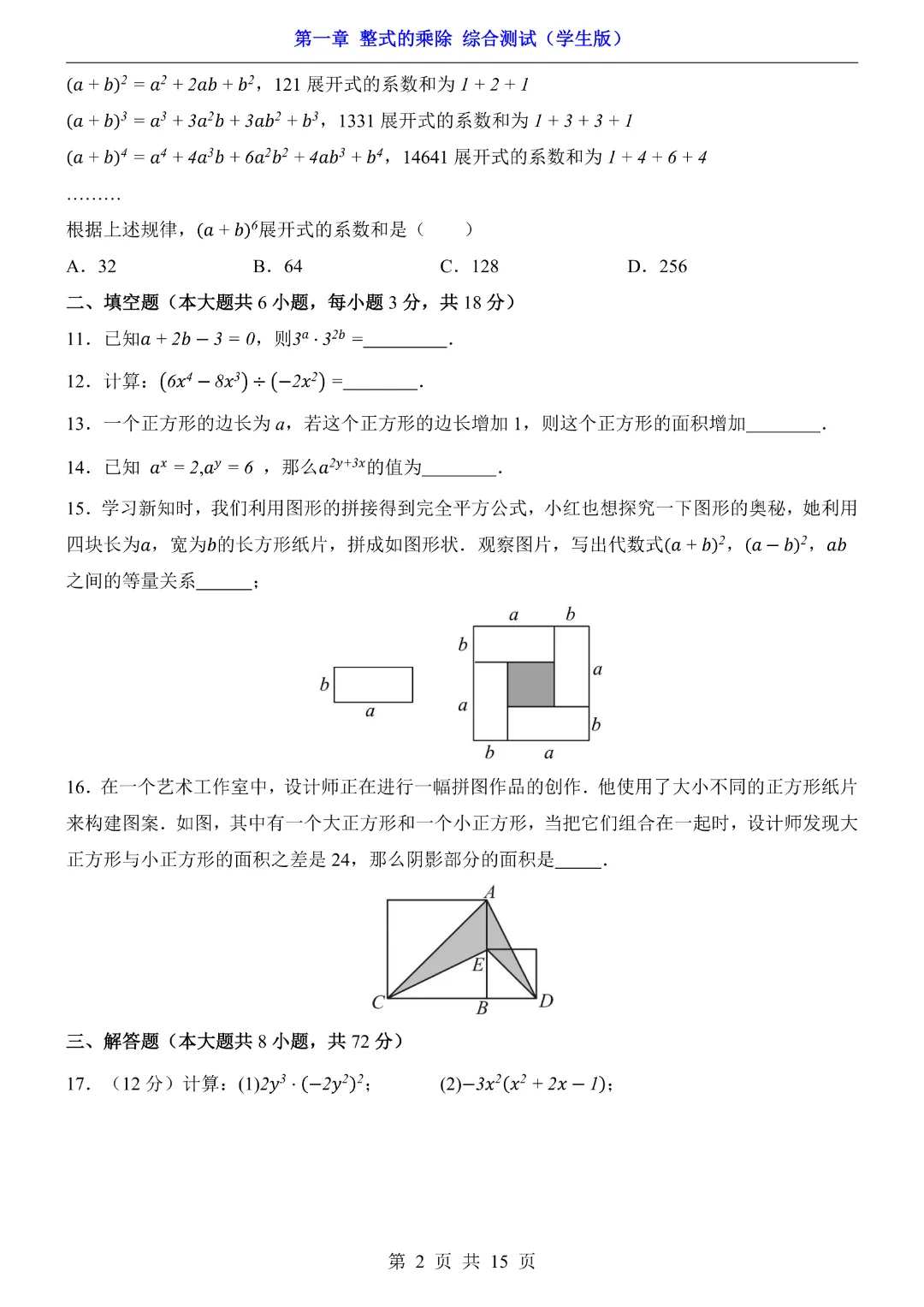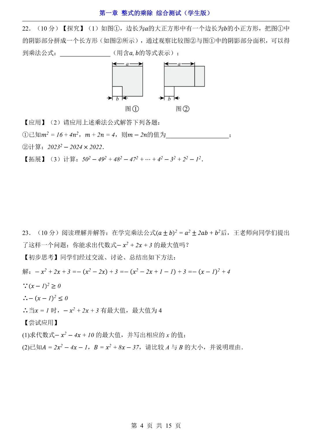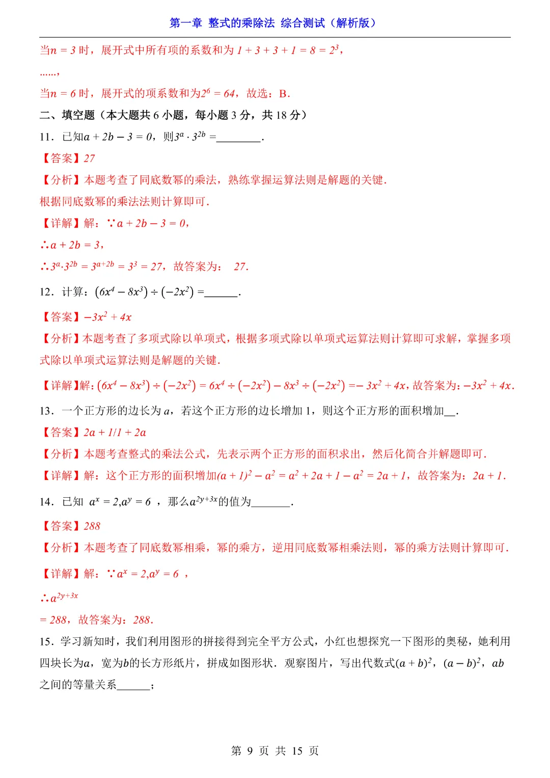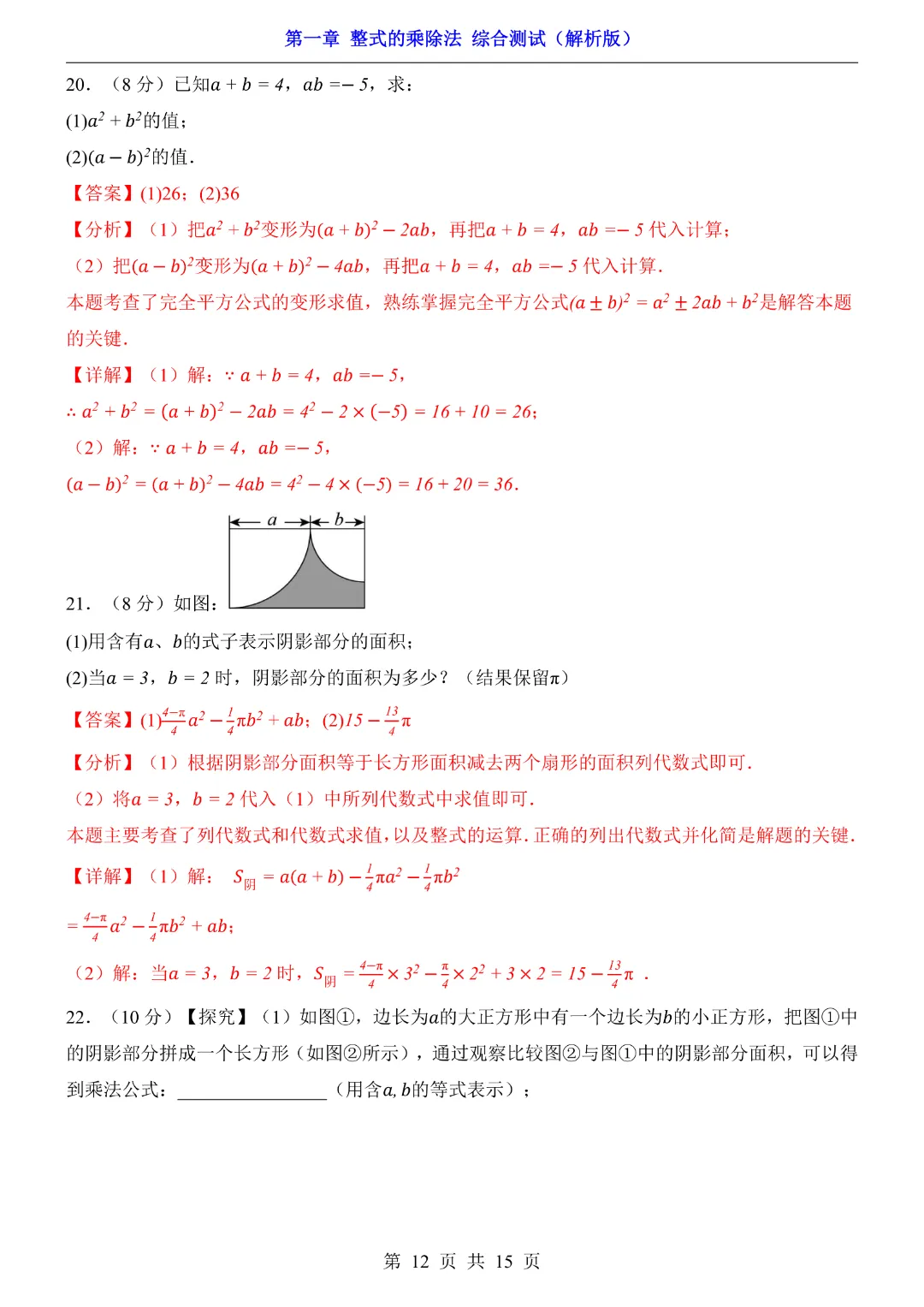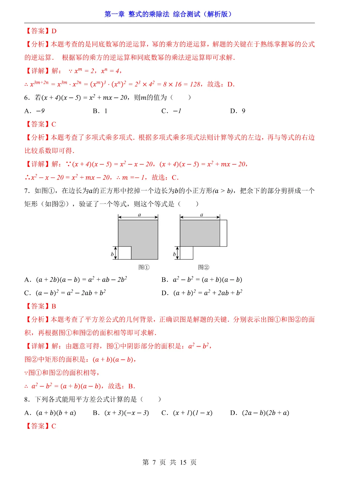 七年级下册数学【北师版】第1章 整式的乘除综合测试带答案丨完整电子版可打印