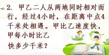 根据在距离中点4千米处相遇和甲比乙速度快,可知甲比乙多走4×2千米,又知经过4小时相遇。即可求甲比乙每小时快多少千米。
