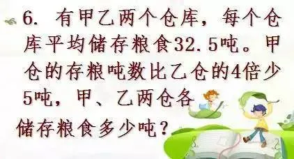 根据甲仓的存粮吨数比乙仓的4倍少5吨,可知甲仓的存粮如果增加5吨,它的存粮吨数就是乙仓的4倍,那样总存粮数也要增加5吨。