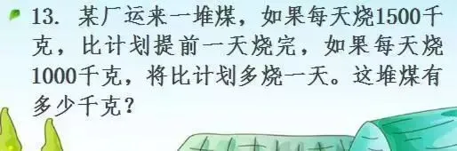 解:原计划烧煤天数:(1500+1000)÷(1500-1000)=2500÷500=5(天)