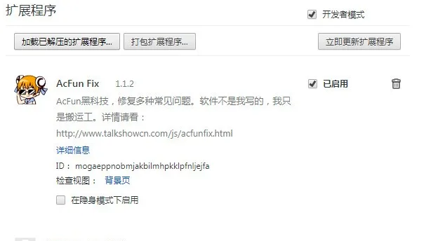 下载解压AcFun Fix黑科技资源包,拿到AcFun Fix_1_1_2_.crx文件。