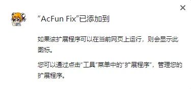 双击这个文件,浏览器会自动弹窗问你要不要添加AcFun Fix,点击添加就行。