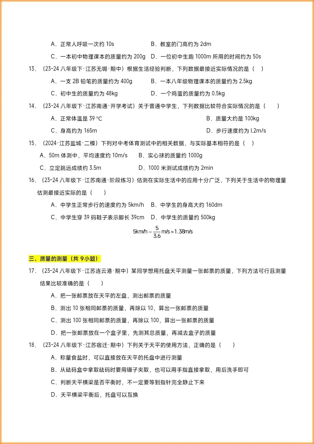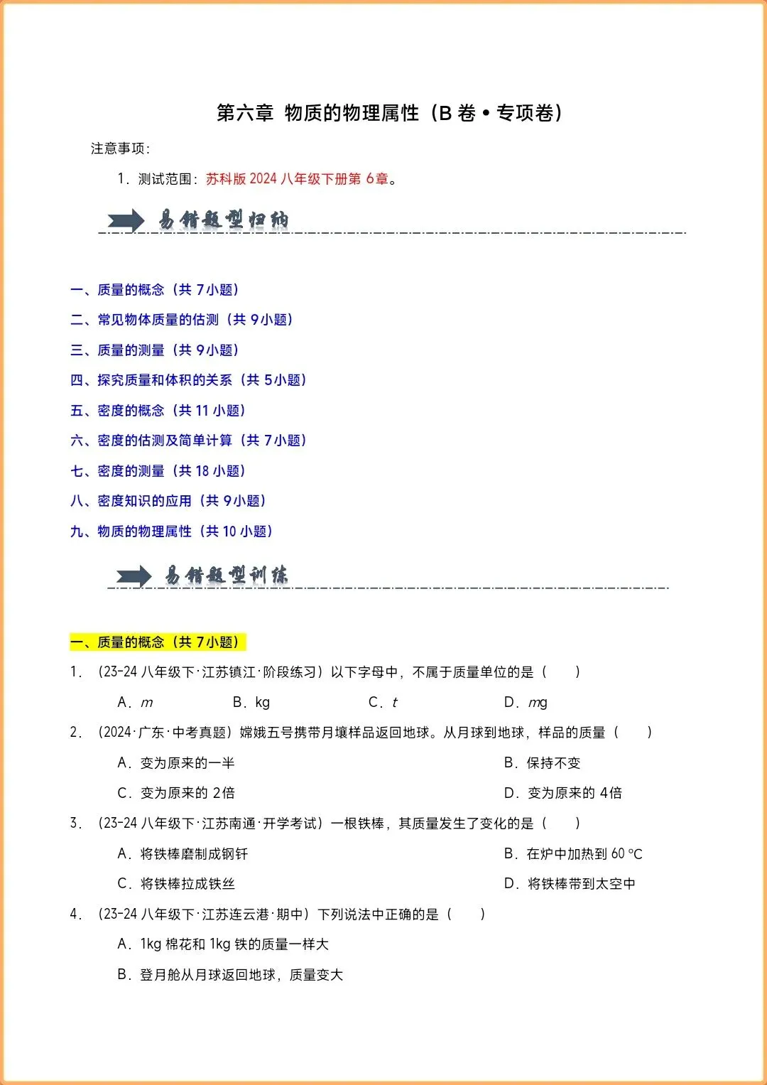 2026八下物理苏科版《一课一练+单元测试AB卷(达标卷&专项卷)》,有完整电子版(原卷版+解析版),可下载可打印