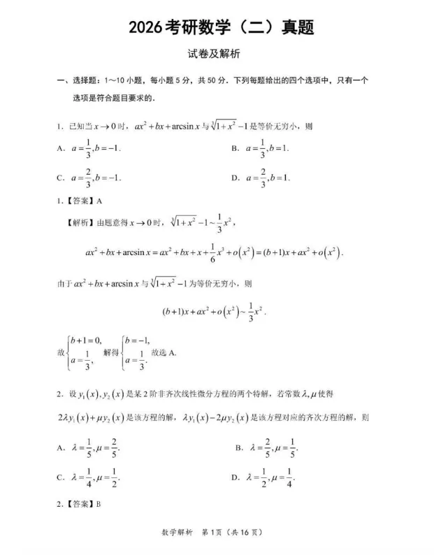 【考研真题】2026政治考研试题电子版及答案解析高清pdf