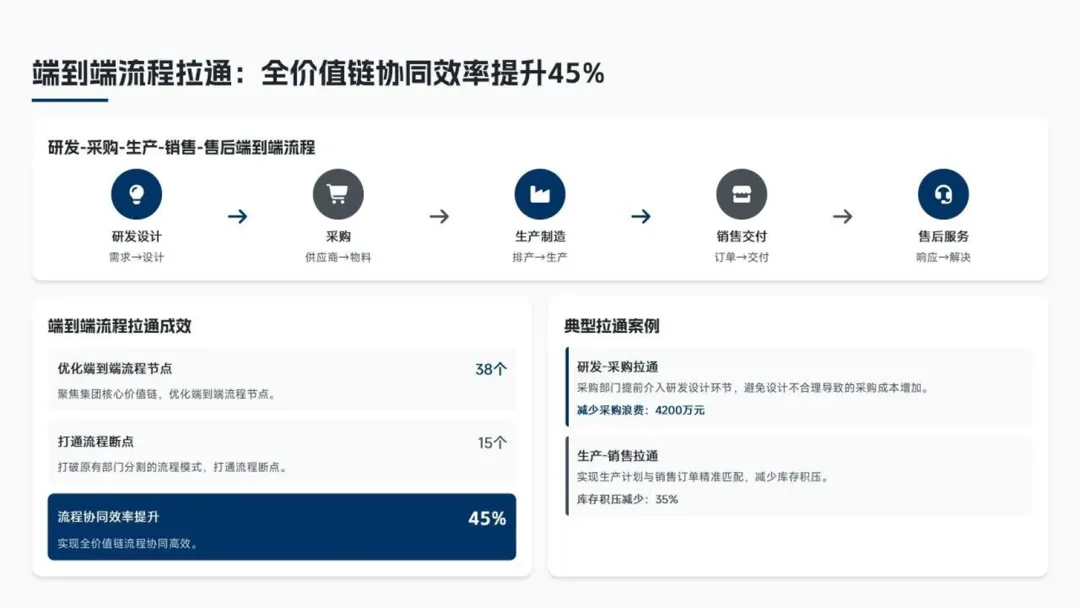 二、 全价值链流程优化突破报告聚焦研发、供应链、销售、职能管理等核心领域,实现了显著的“熵减”与提效: