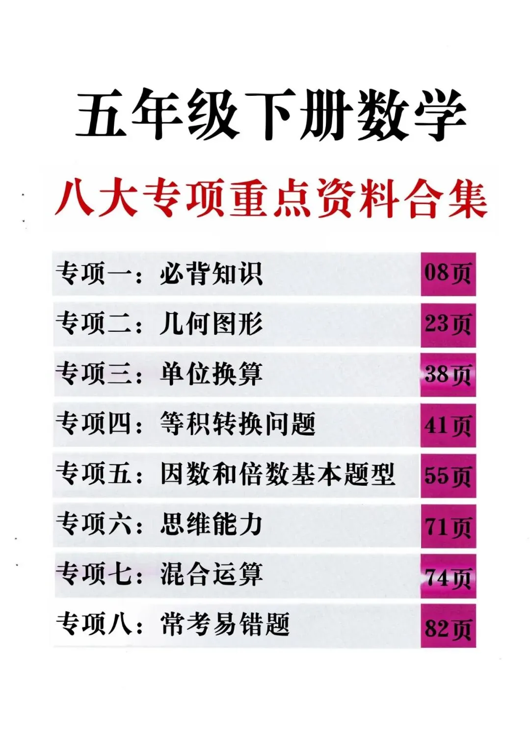 26春五年级下册数学|八大专项合集,可下载可打印