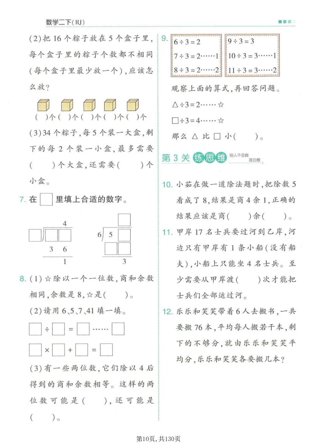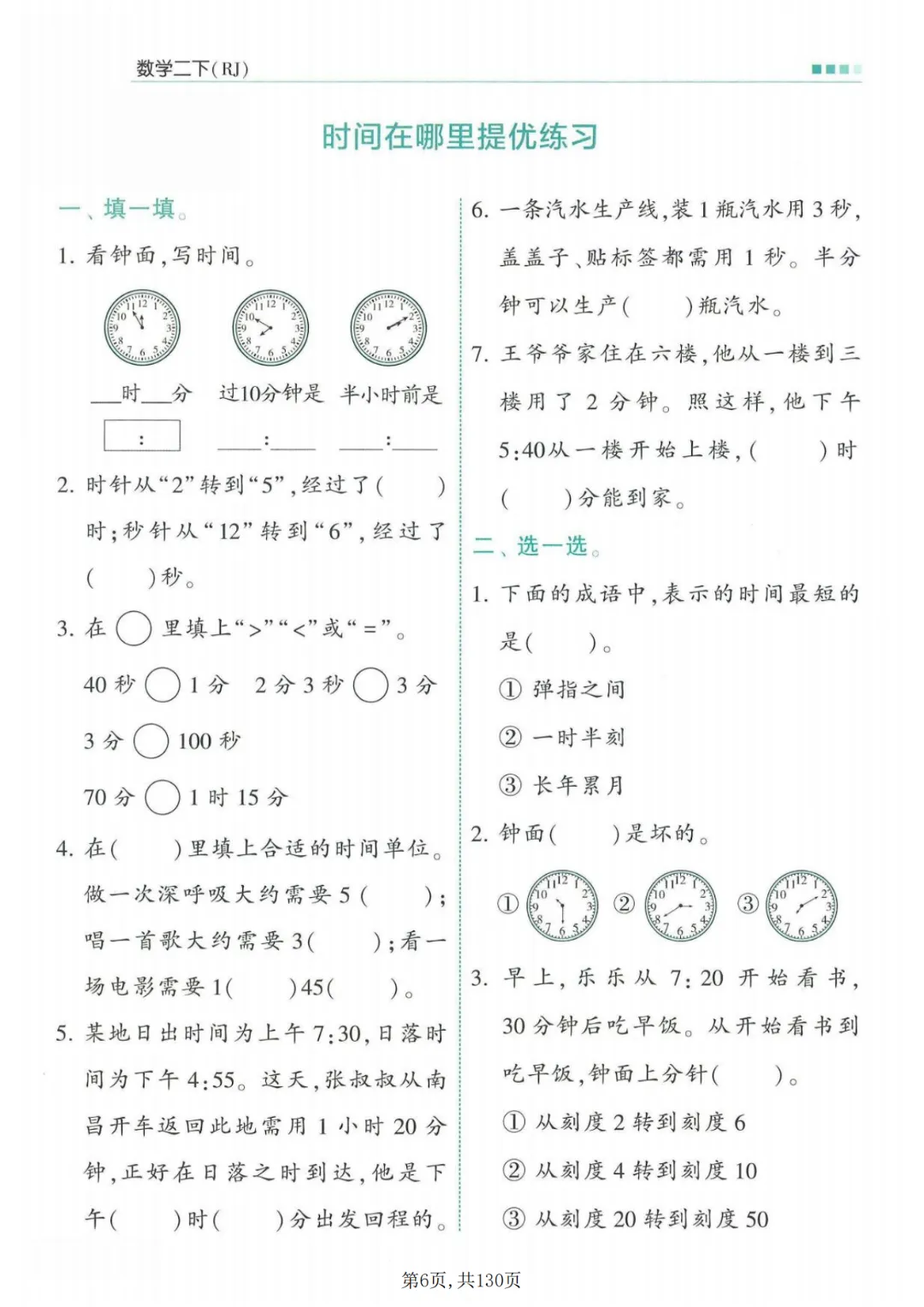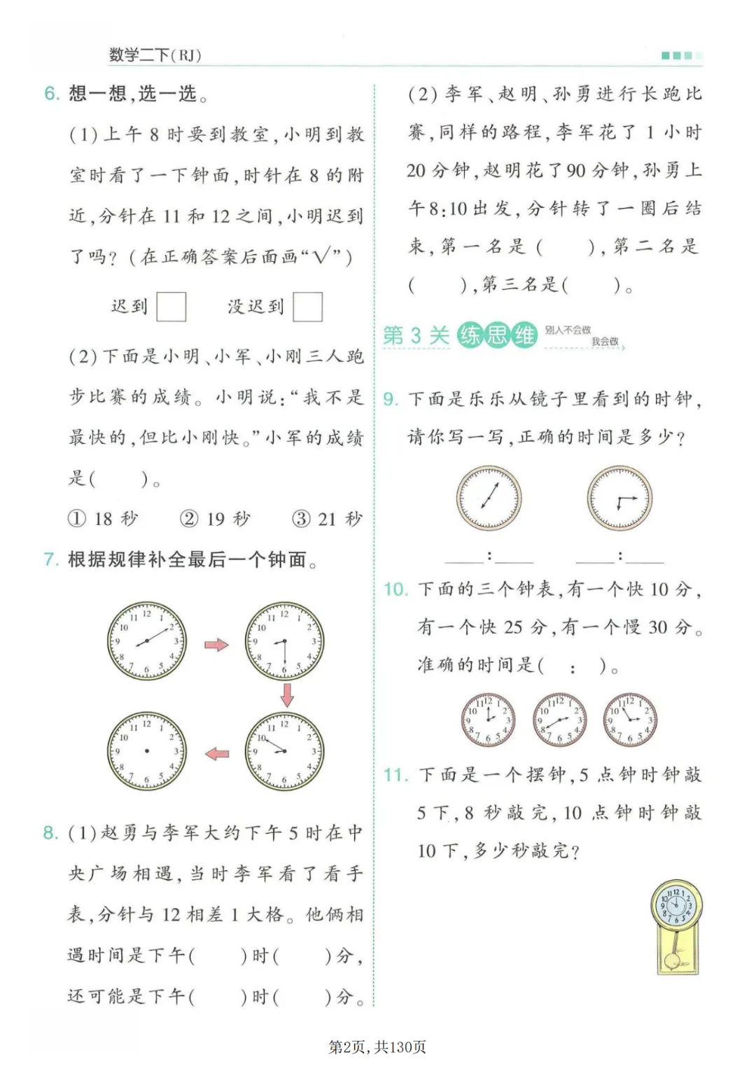 《二年级下册数学一课一练》有答案,电子版可打印
