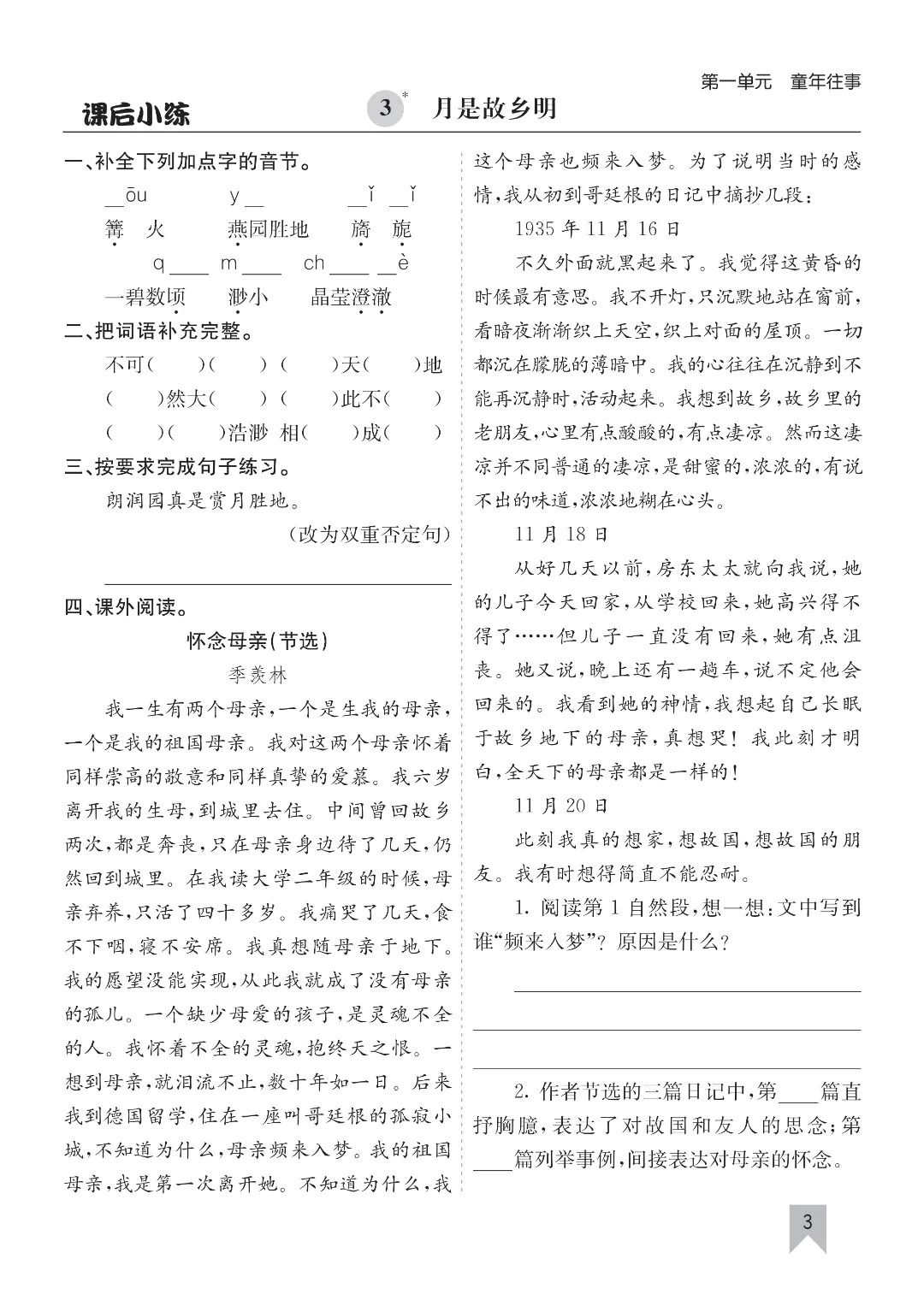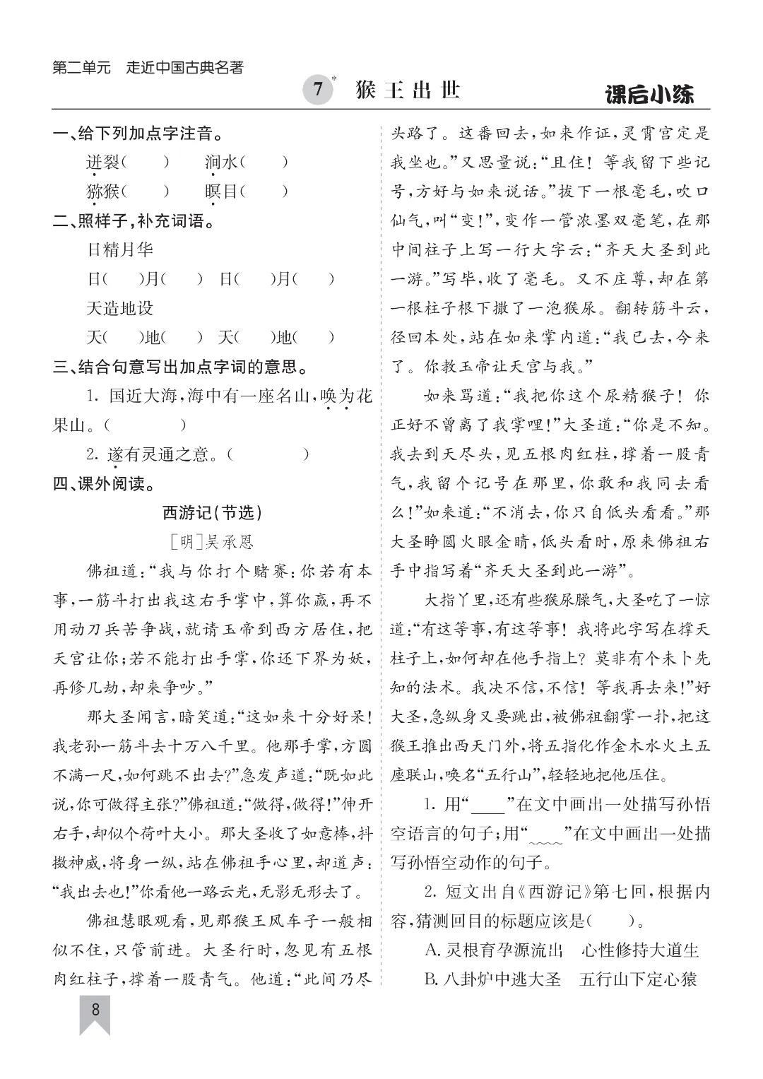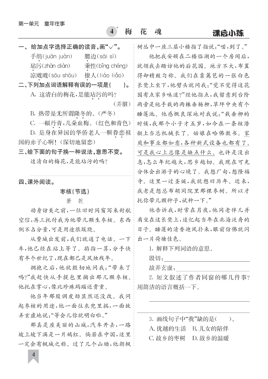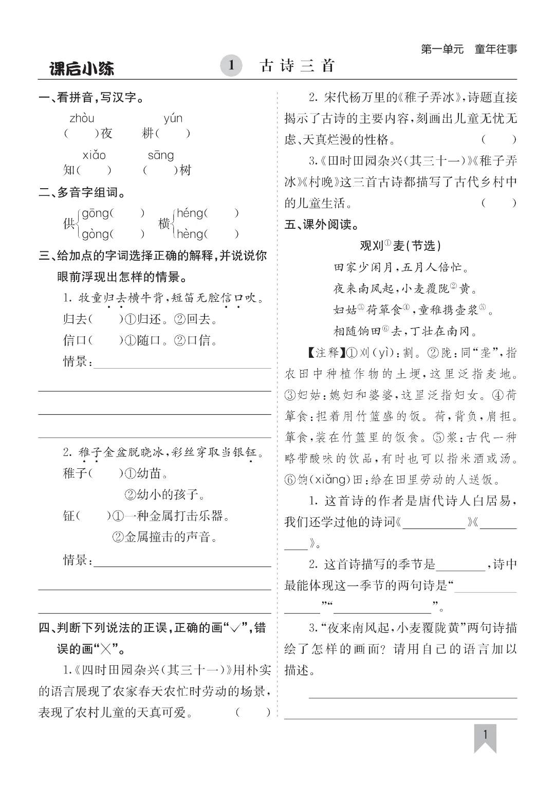 26年春新五年级下册人教版部编版语文《课后一课一练+答案》‖可打印