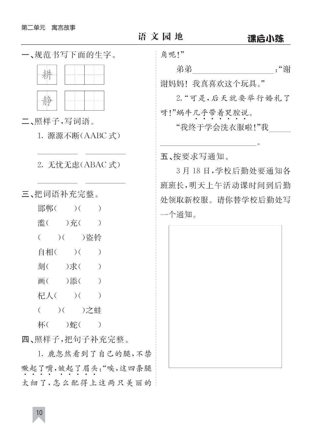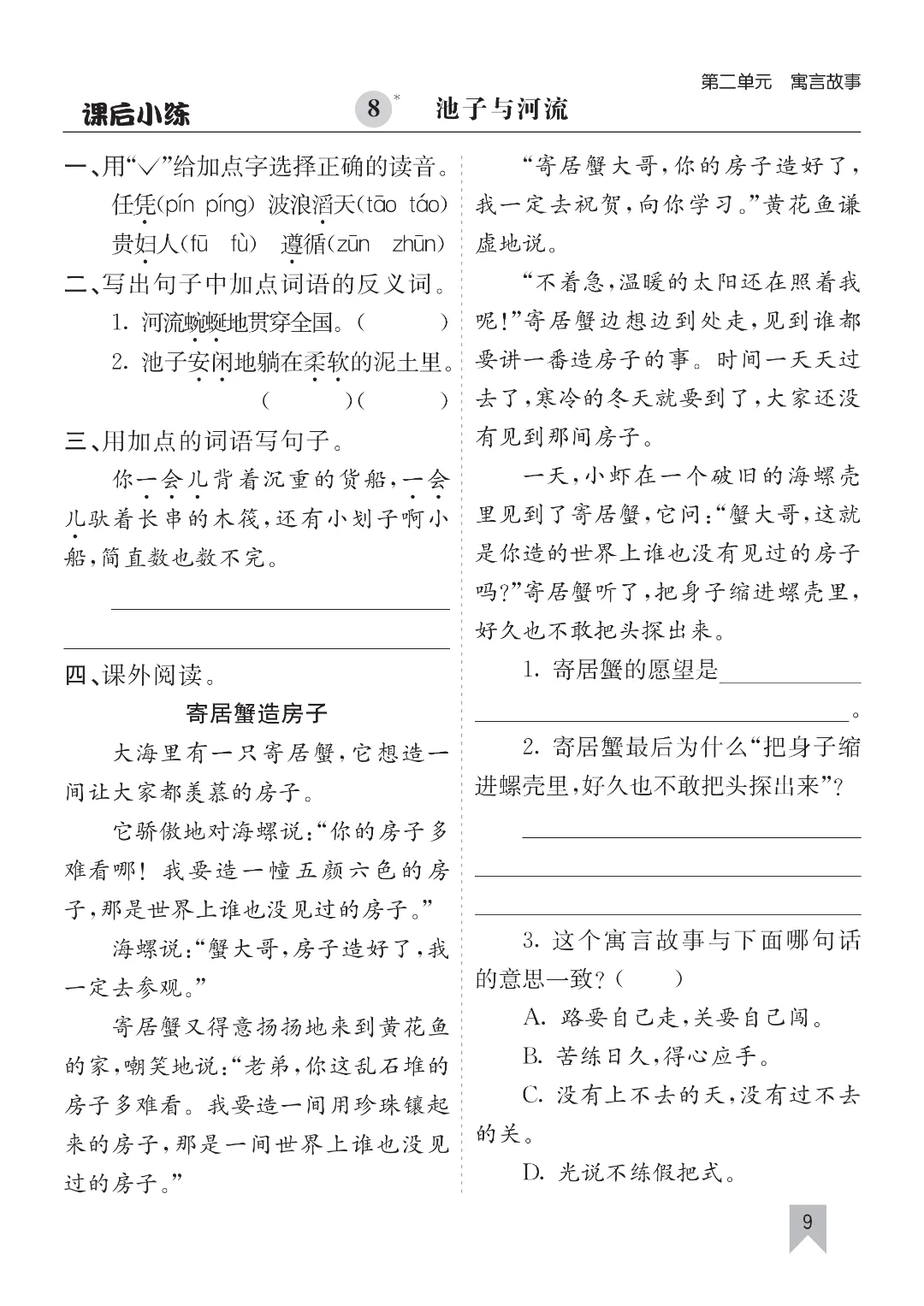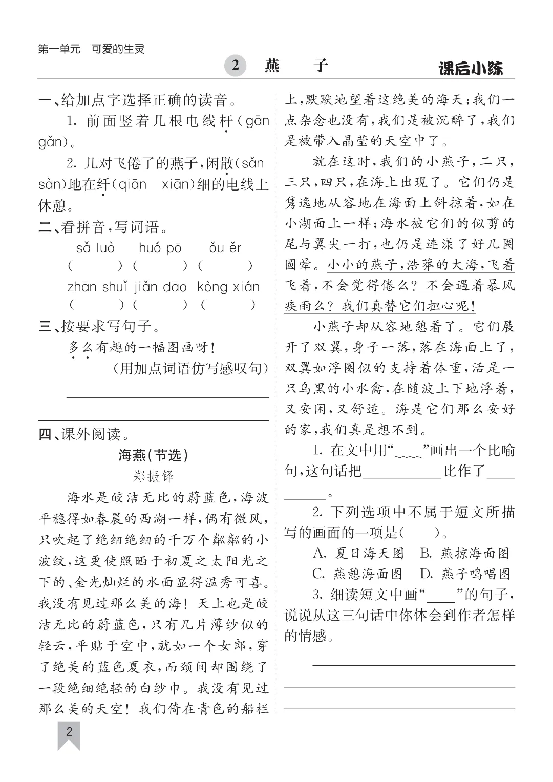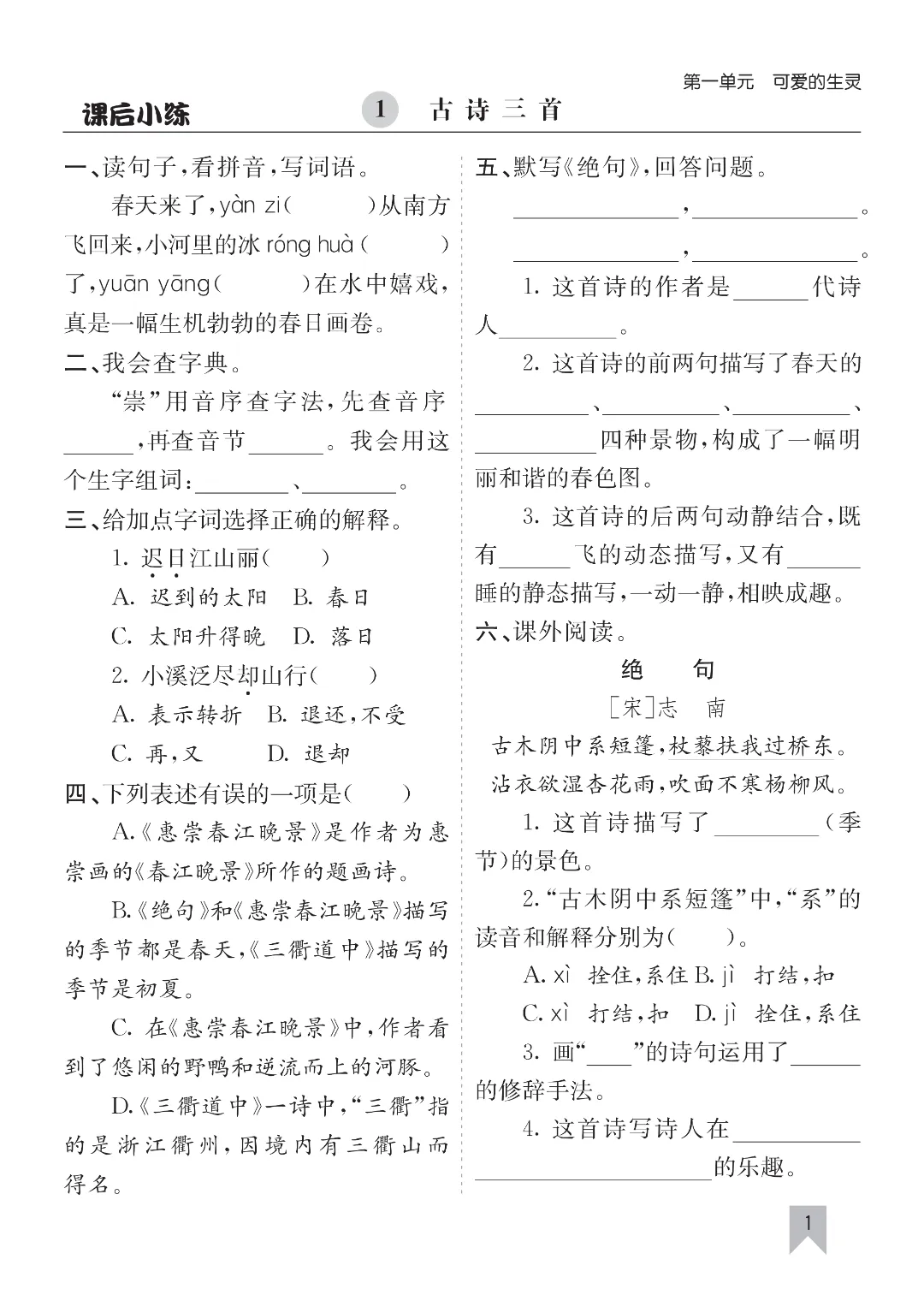 26年春新三年级下册人教版部编版语文《课后一课一练+答案》‖可打印
