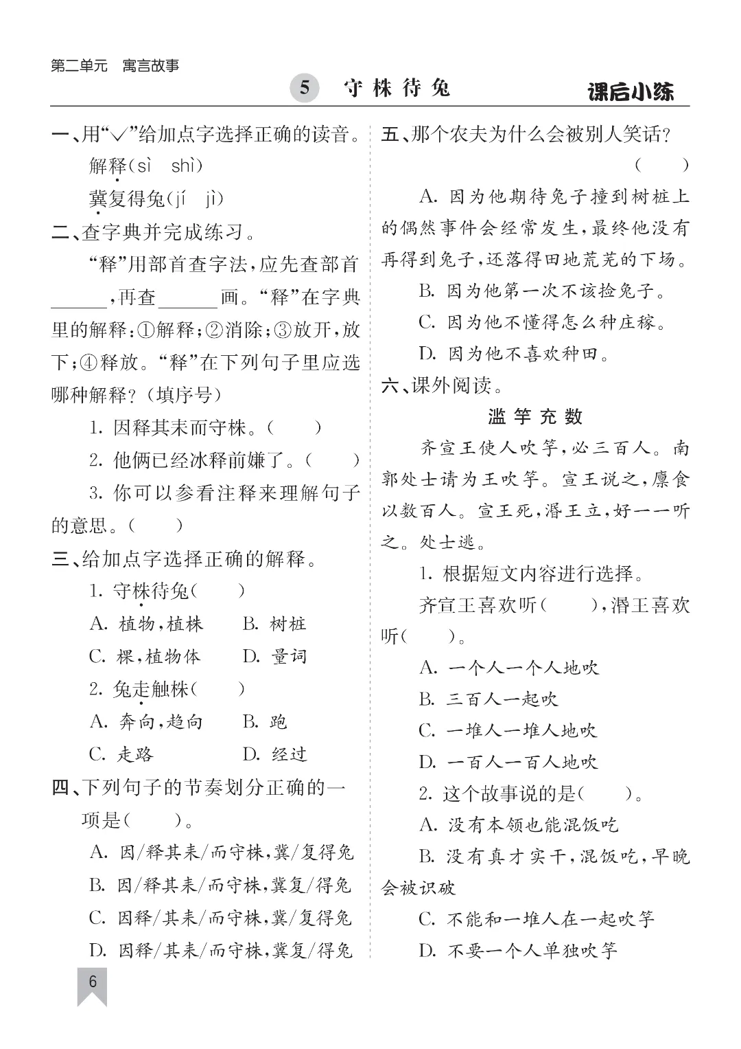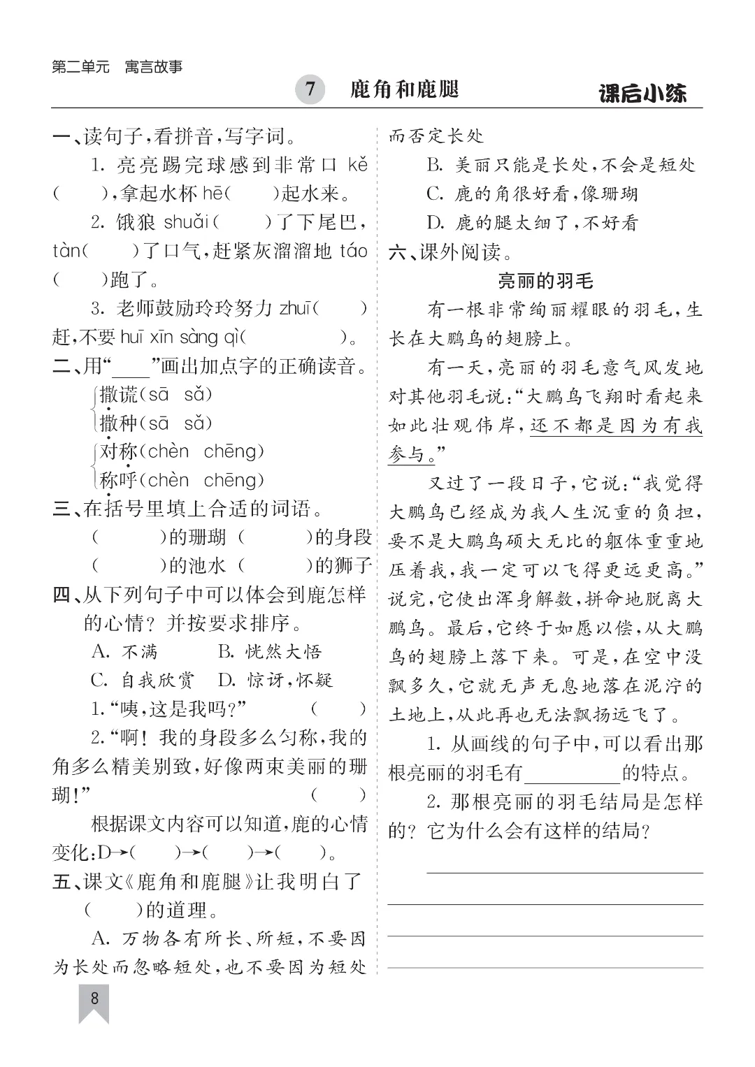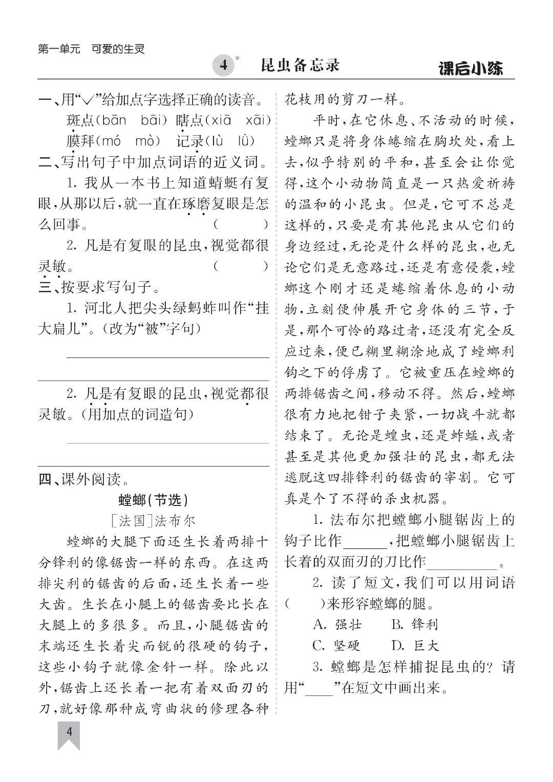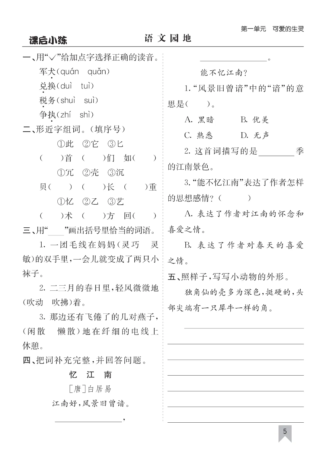 26年春新三年级下册人教版部编版语文《课后一课一练+答案》‖可打印