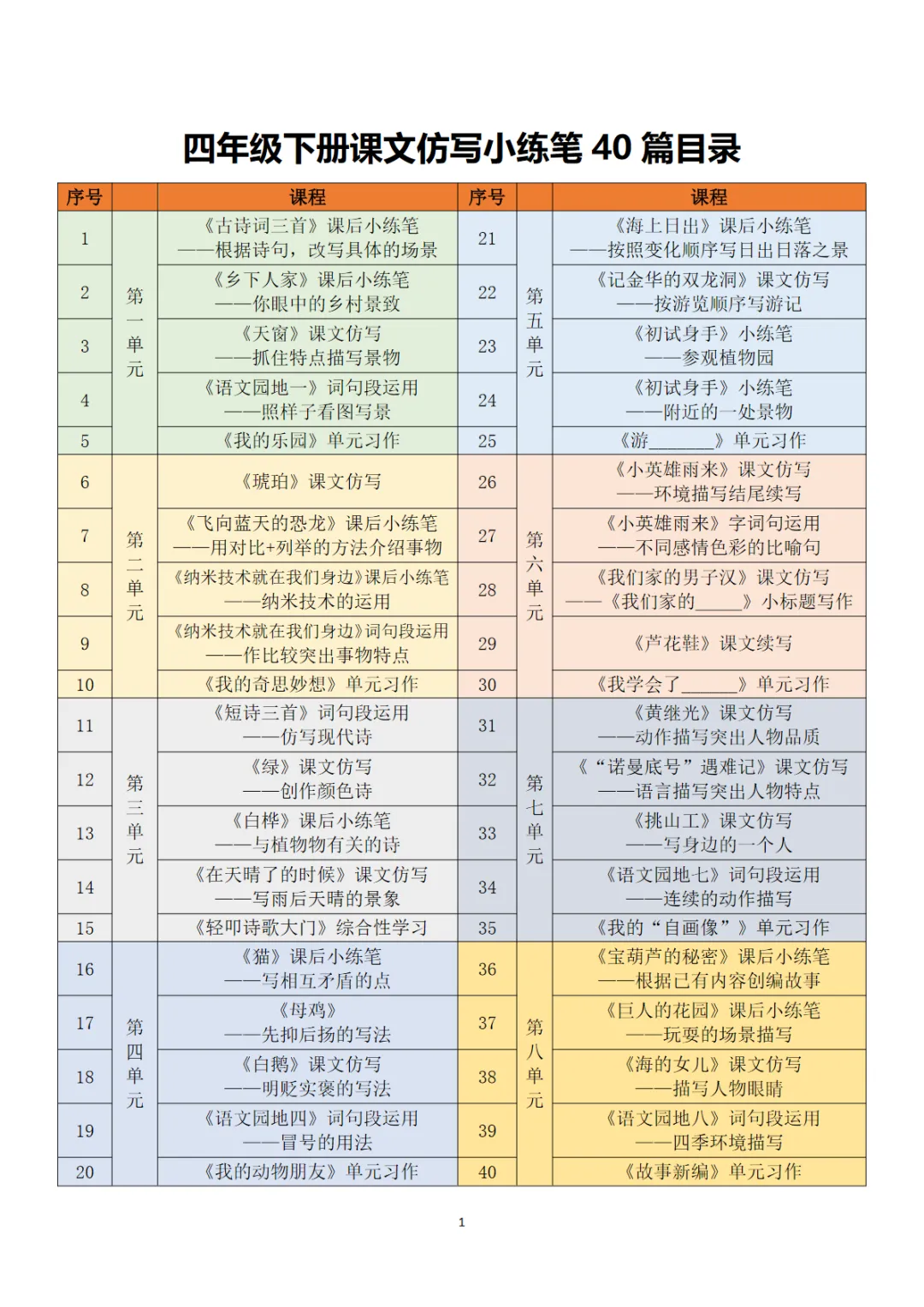 【免费下载】四年级(下)语文 课文仿写小练笔,PDF电子版,共87页,可打印