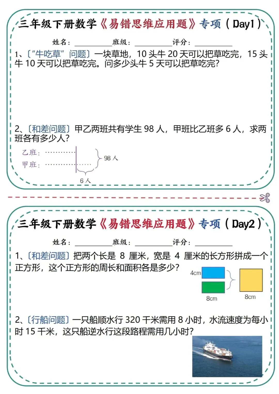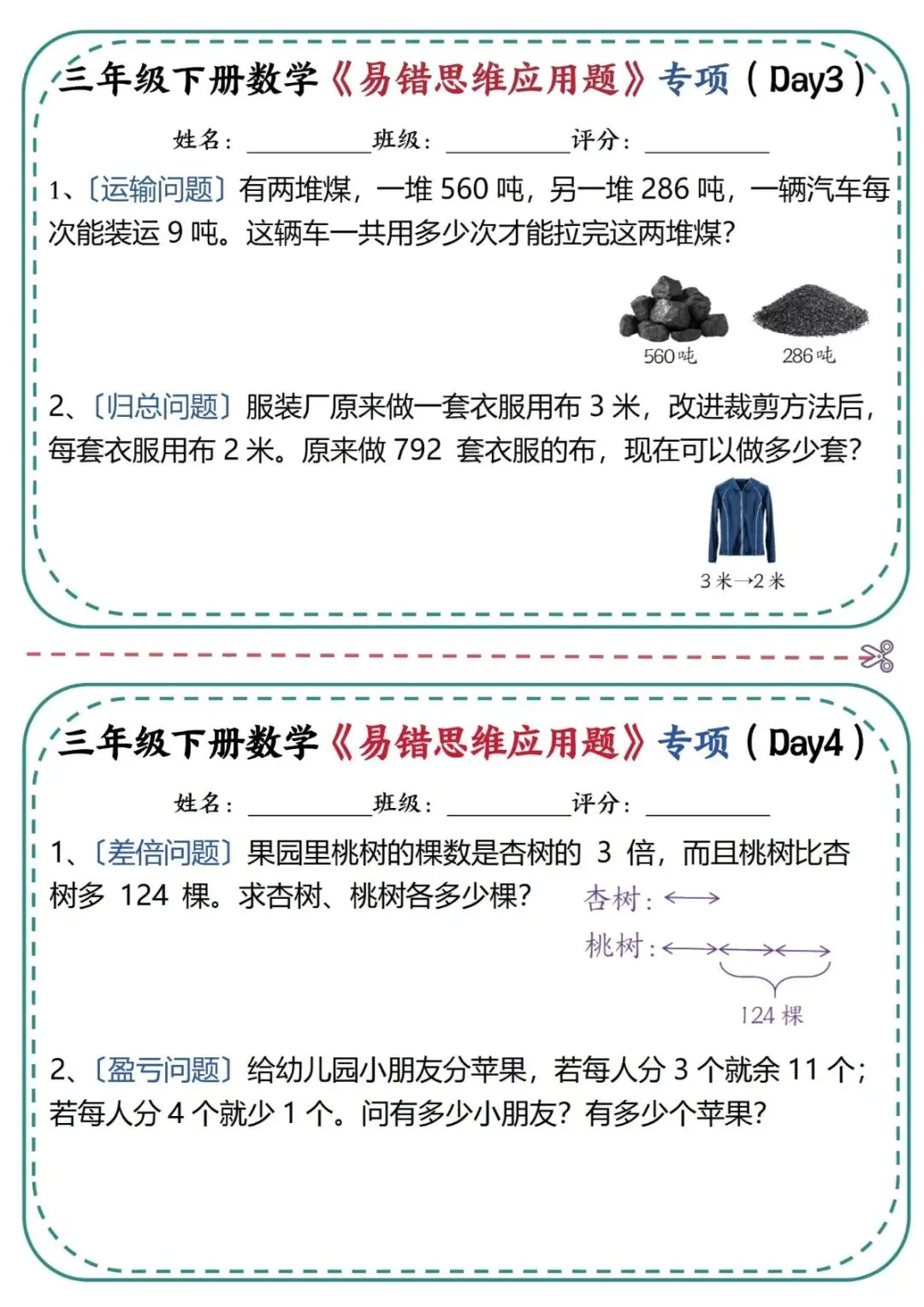 【免费下载】三年级(下)数学 《易错思维应用题》专项练习,PDF电子版,共24页,可打印