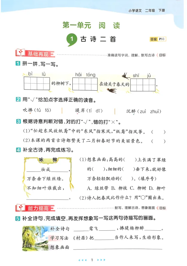 ✅ 同步一课一练,紧跟教学进度:依据人教版二年级下册编写,每篇课文设置针对性练习,从《古诗二首》的字词默写,到《开满鲜花的小路》的课文理解,学什么练什么,无缝衔接课堂内容-1-10。
