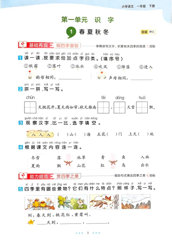 ✅ 同步一课一练,紧跟教学进度:依据人教版一年级下册编写,从《春夏秋冬》到《小壁虎借尾巴》,每篇课文设置针对性练习,学什么练什么,无缝衔接课堂内容-1。