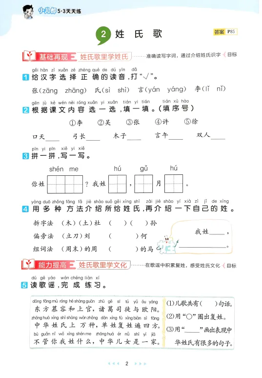 一年级是语文学习的起步期——从零基础到掌握几百个生字,从听故事到自己读短文。孩子是不是开始出现这些状况:拼音拼读磕磕绊绊、生字记了又忘、课文读得挺好一做题就懵? 别着急,这时候需要一套专业的同步练习来帮孩子稳扎稳打!《53天天练》由曲一线编著,教育科学出版社出版,是全国百万师生信赖的同步助学资料-3。