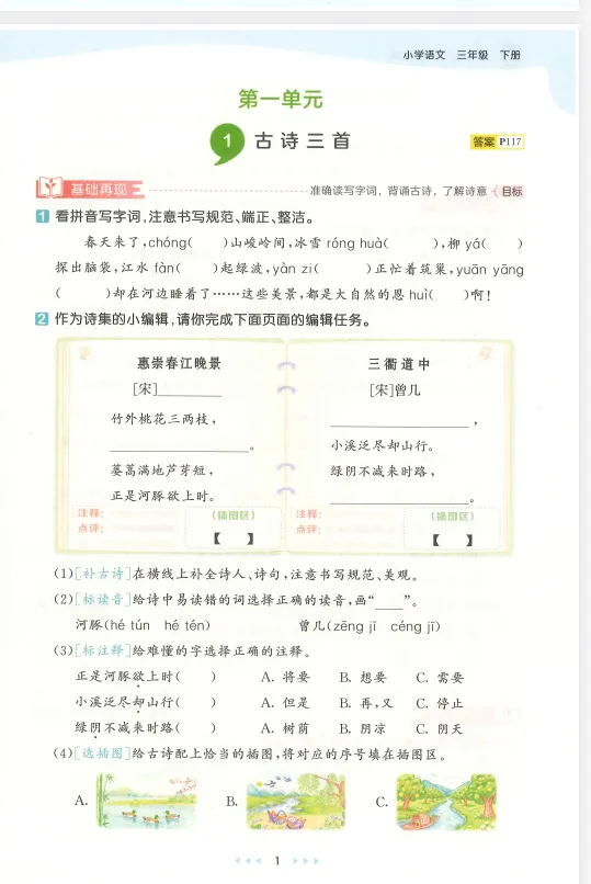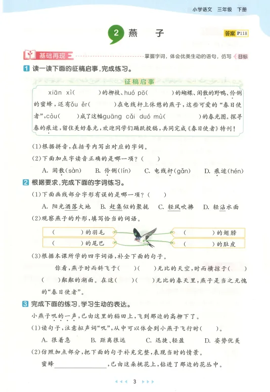 ✅ 一课一练巩固基础:每篇课文设置针对性练习,看拼音写词语、多音字辨析、词语搭配、句子训练,题型丰富全面,让孩子在练中掌握、在练中巩固-3-7。