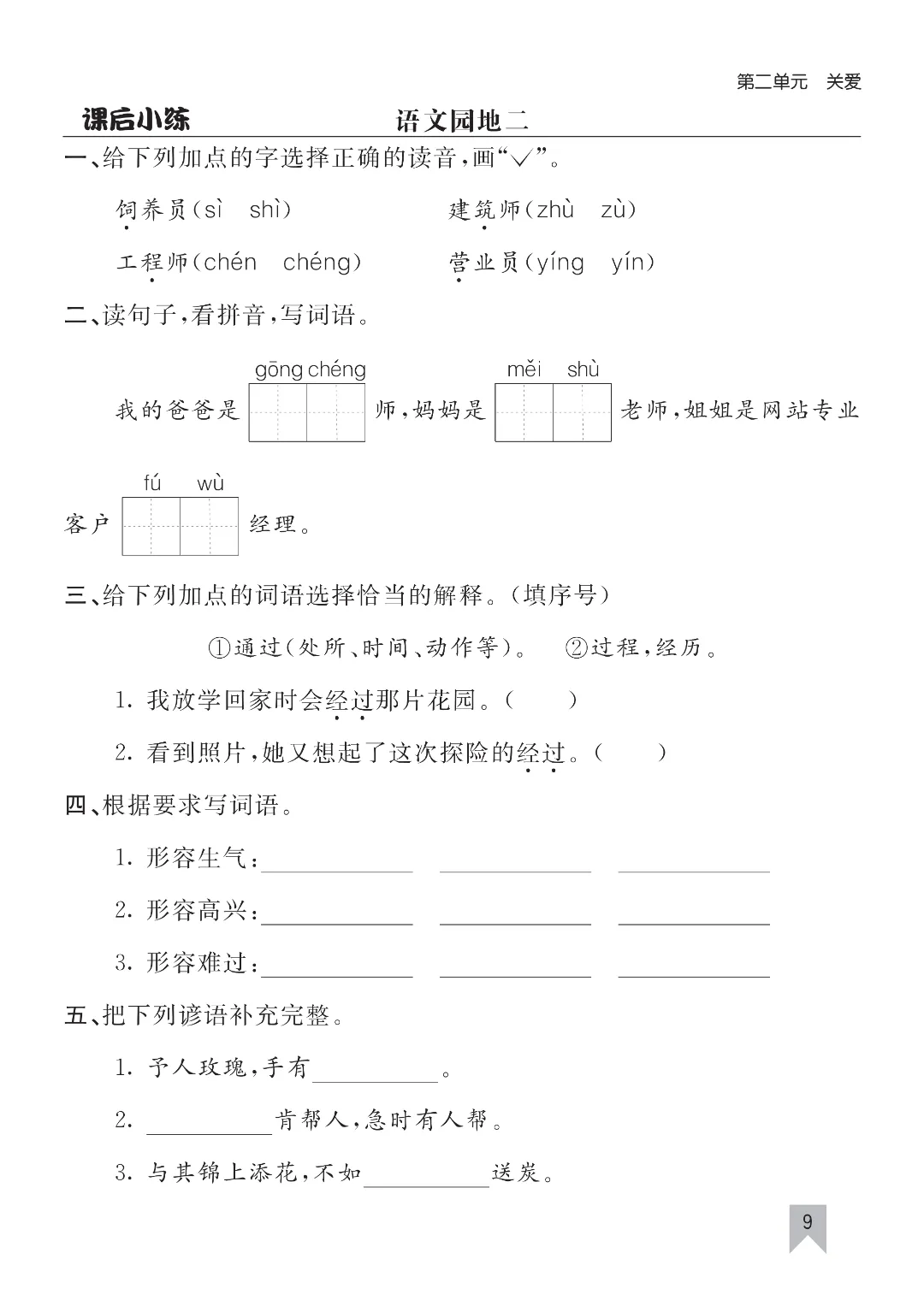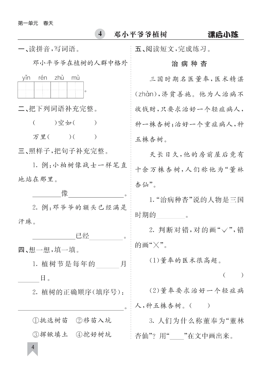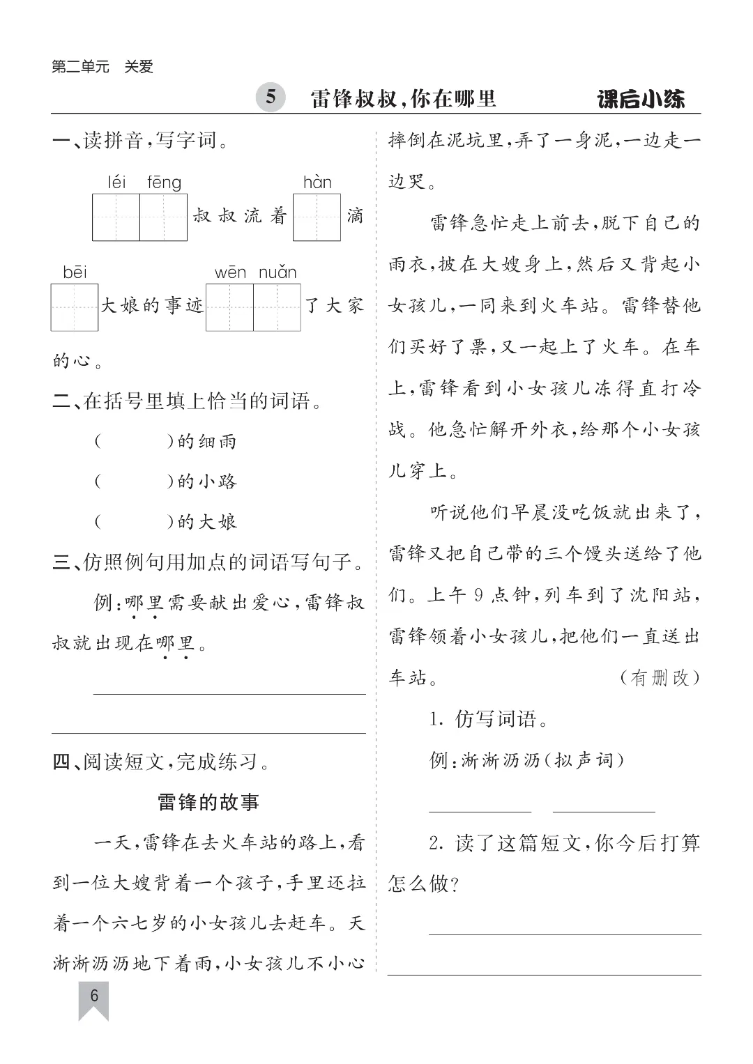 26年春新二年级下册人教版部编版语文《同步课本·课后一课一练+答案》‖可打印