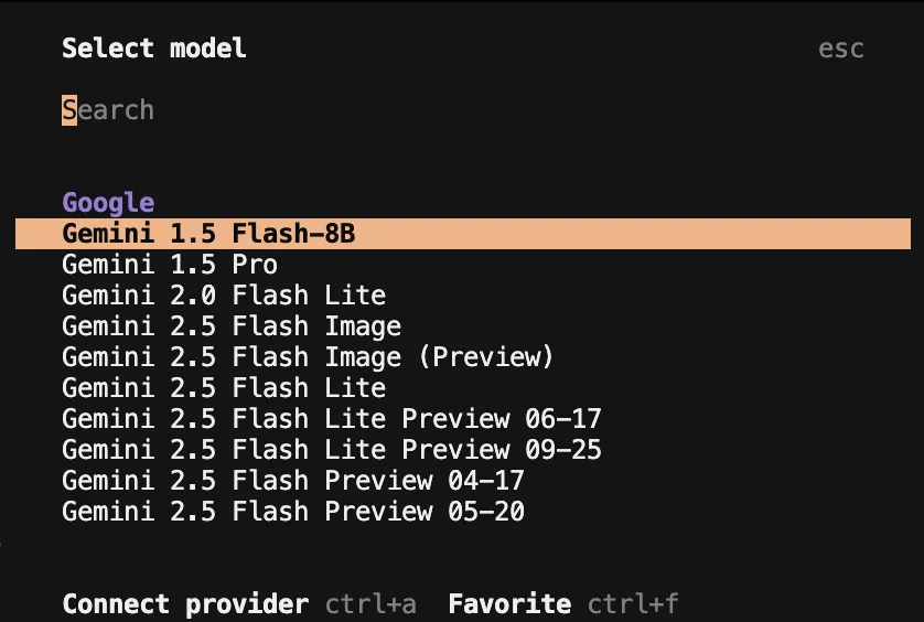 使用自己的 Google 账号登录,登录成功后,就可以打开 opencode 来使用 Gemini 模型了