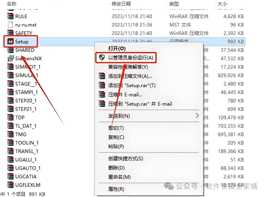 12.鼠标右击【Setup】安装程序,选择【以管理员身份运行】。