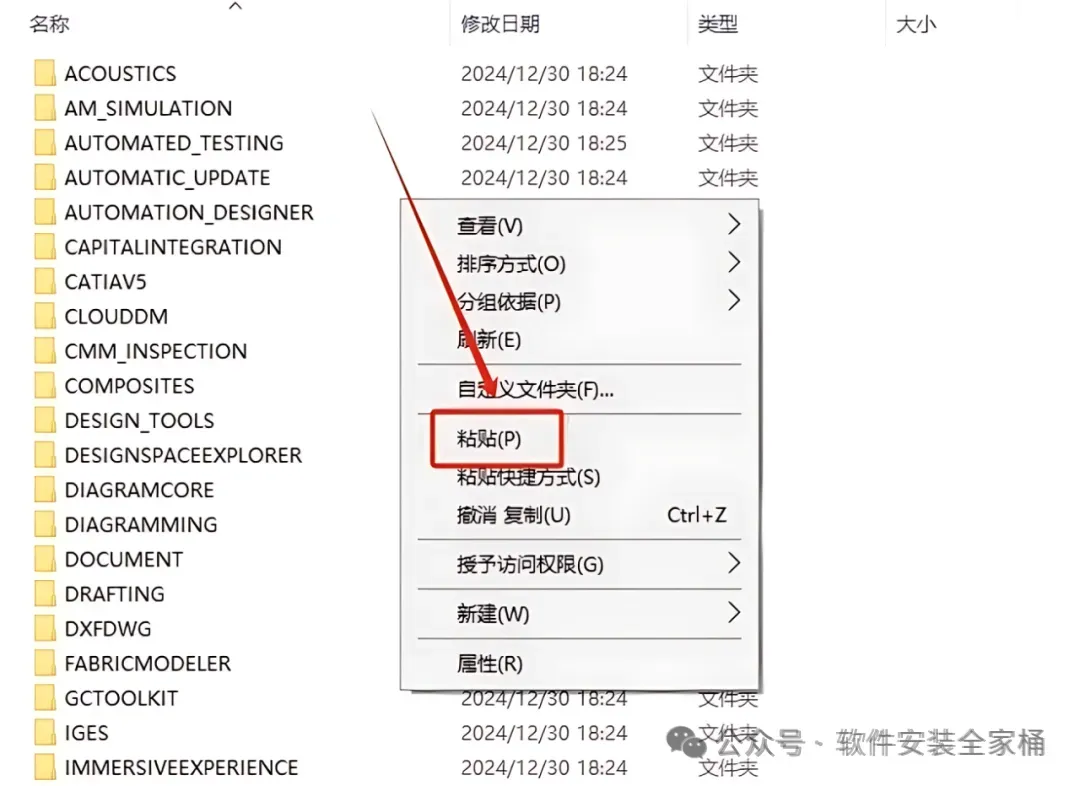 28.在打开的文件夹空白处,鼠标右击【粘贴】之前复制文件夹。