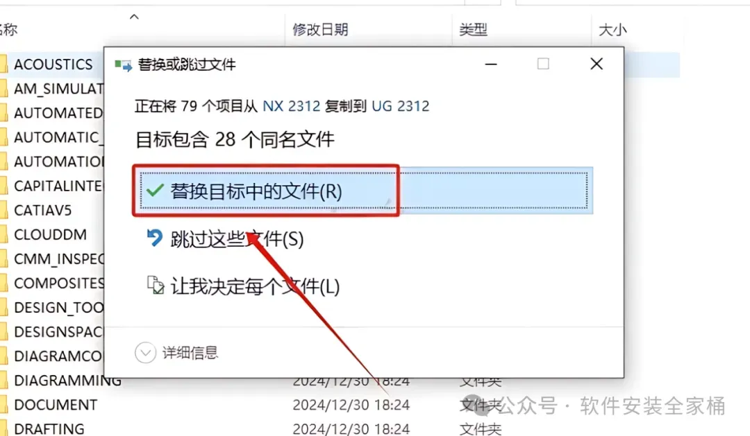 29.点击【替换目标中的文件】。