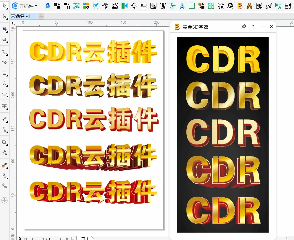 功能简介:黄金立体字效插件可一键为文本添加金色的3D效果,操作简单,无需转曲,选中文本后即可快速生成华丽的立体金字。