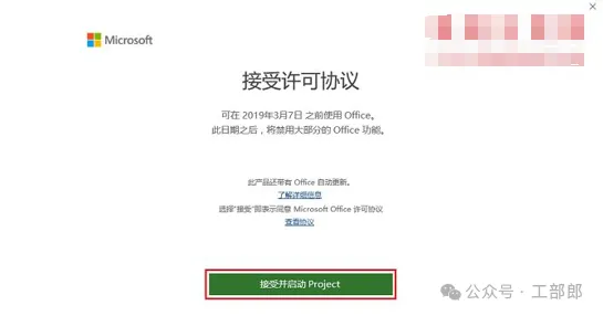 10.进入许可协议界面,点击【接受并启动Project】。