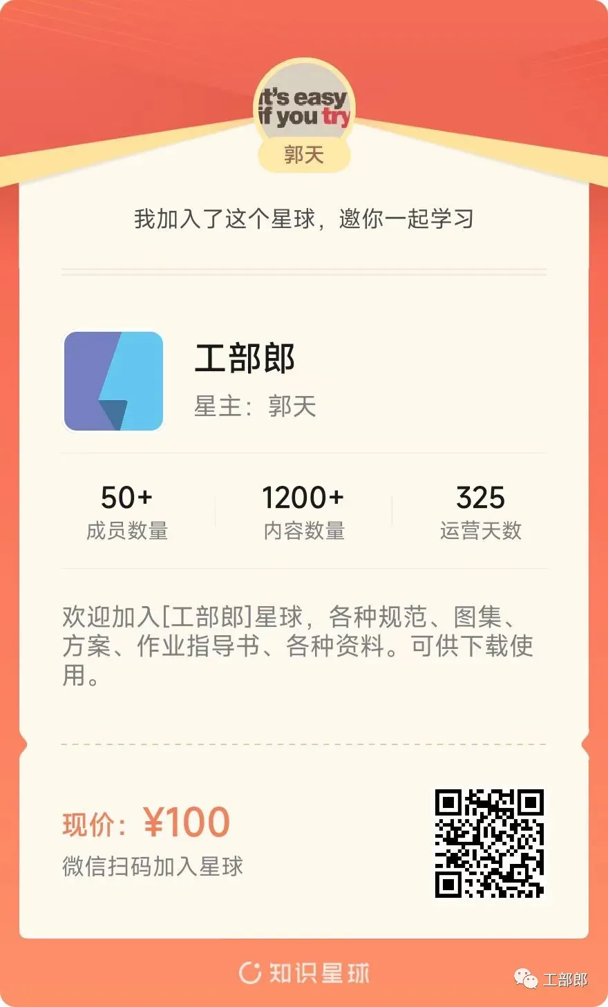 扫码加入【工部郎】 知识星球