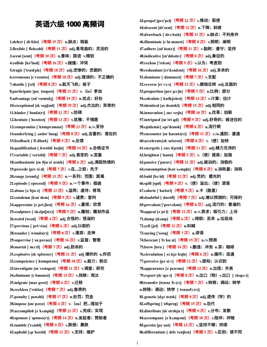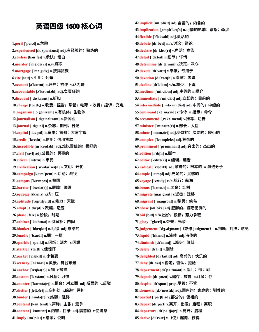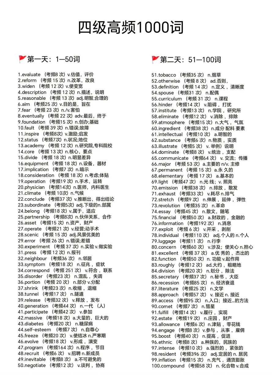 26年6月大学生四六级核心1500词PDF电子版可打印(附艾宾浩斯单词记忆20天计划表)