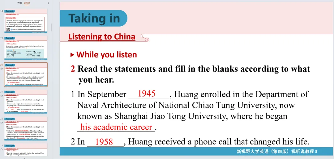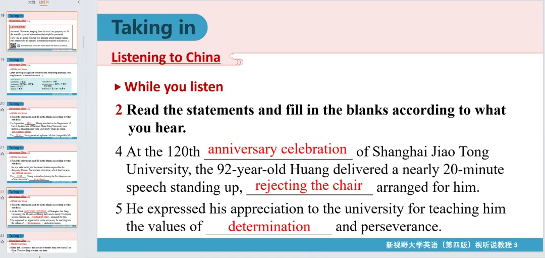 新视野大学英语视听说教程 3(第四版)核心内容
