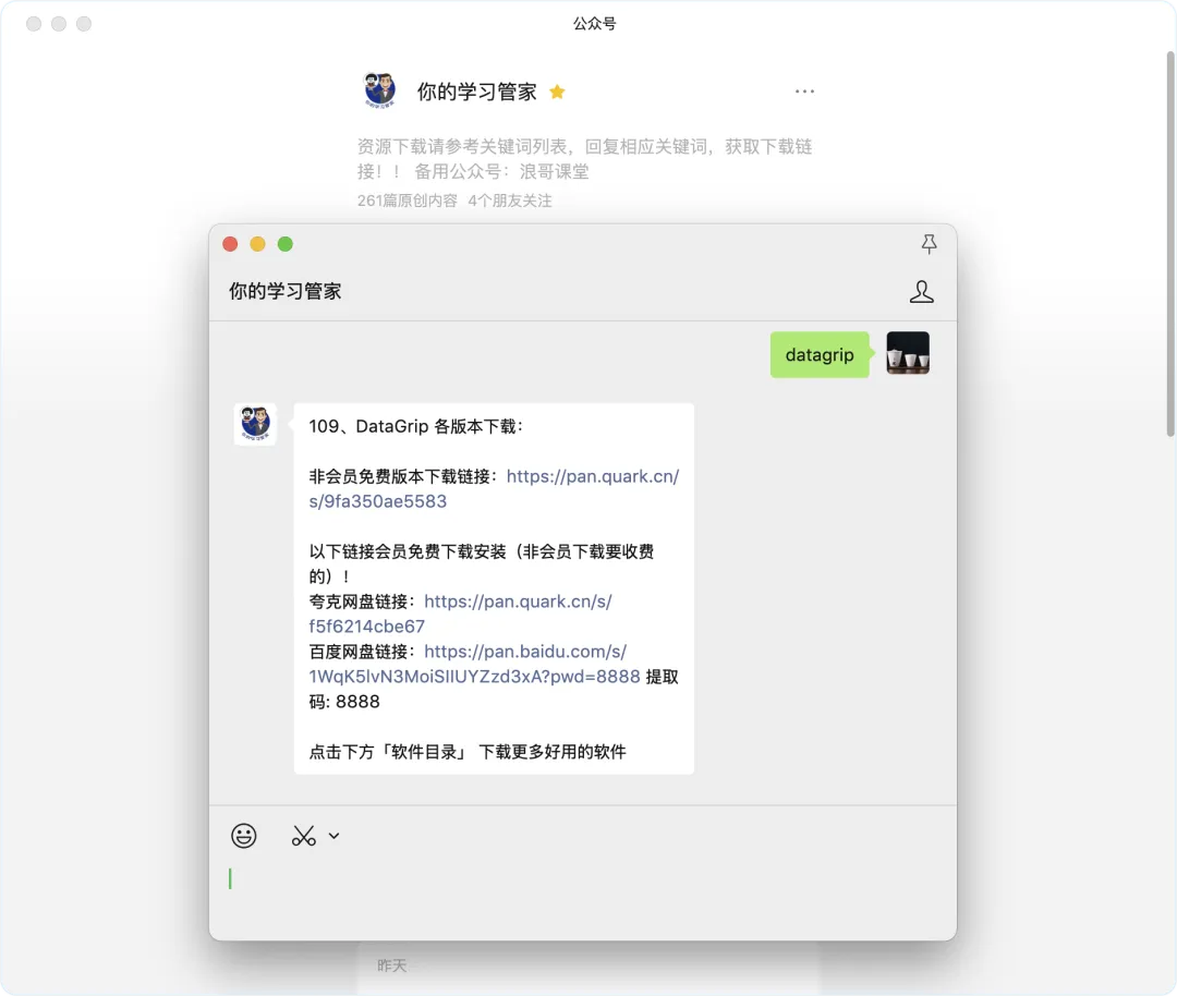 1请在公众号「你的学习管家」后台回复:DataGrip 获取下载链接!