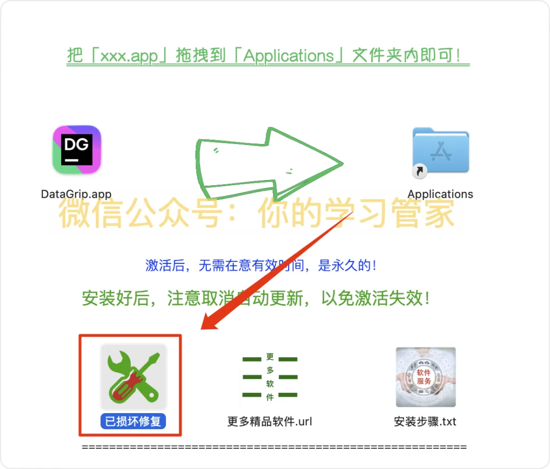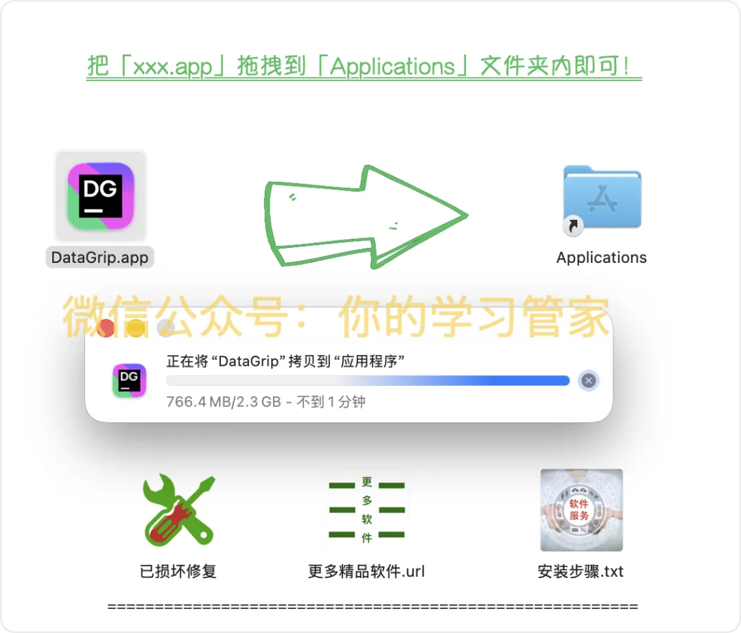 4、双击【DataGrip.app】拖拽到【Applications】文件夹内;