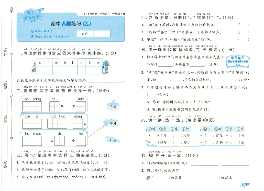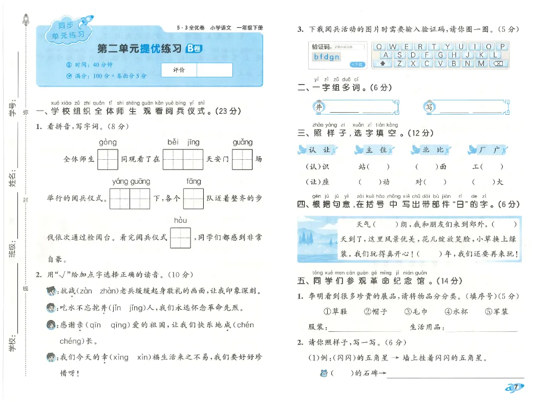26年春人教版部编版一年级下册语文《全册单元提优AB卷+期中期末真题测试卷》共33套含答案高清完整可打印