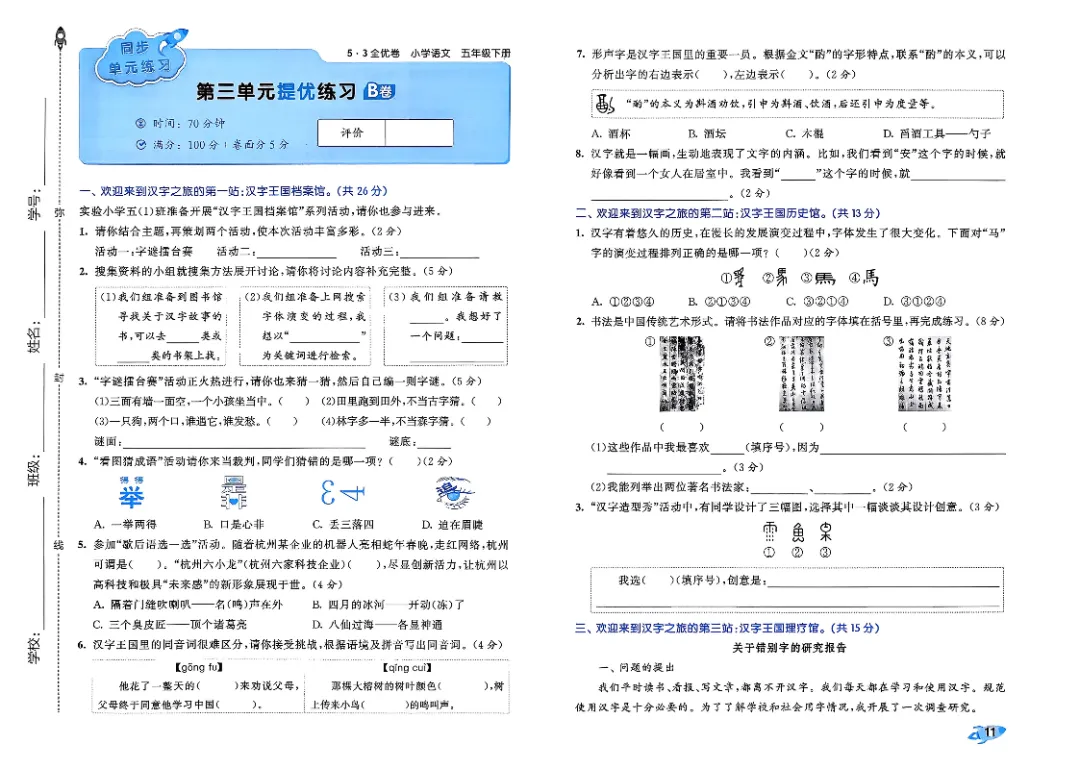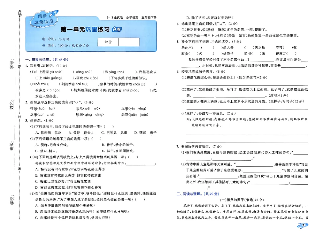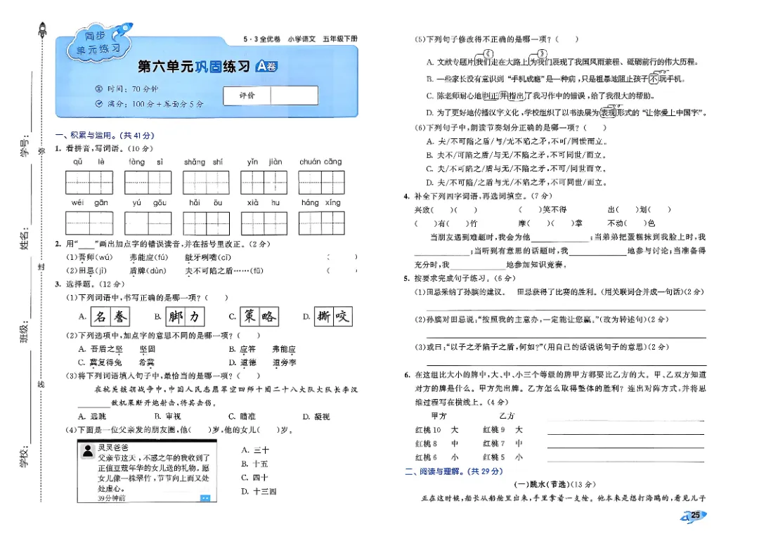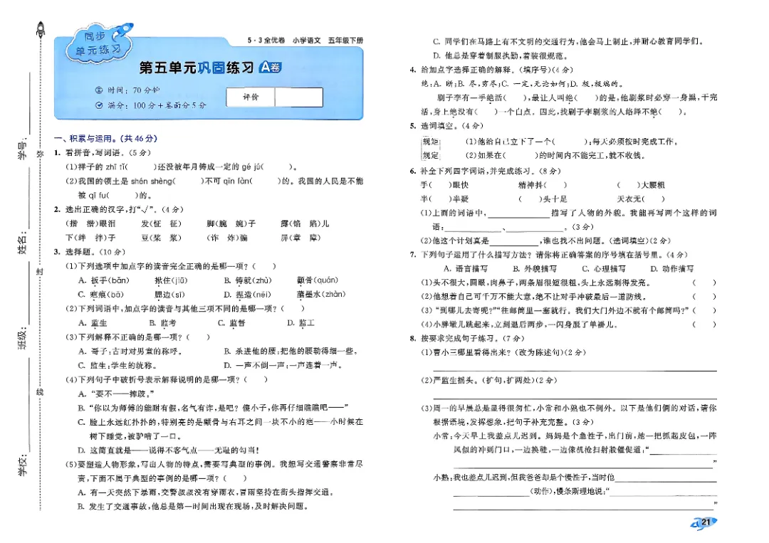 26年春人教版部编版五年级下册语文《全册单元提优AB卷+期中期末真题测试卷》共33套含答案高清完整电子版可打印
