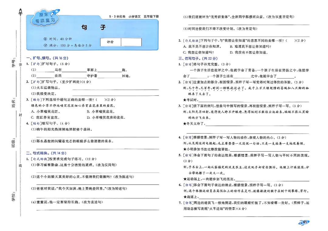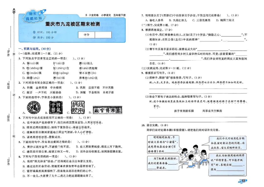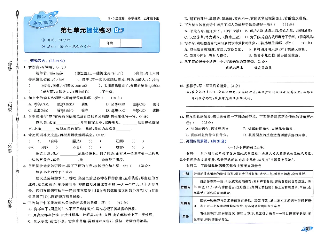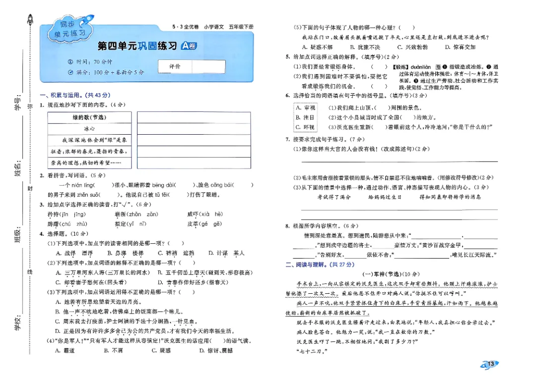 26年春人教版部编版五年级下册语文《全册单元提优AB卷+期中期末真题测试卷》共33套含答案高清完整电子版可打印