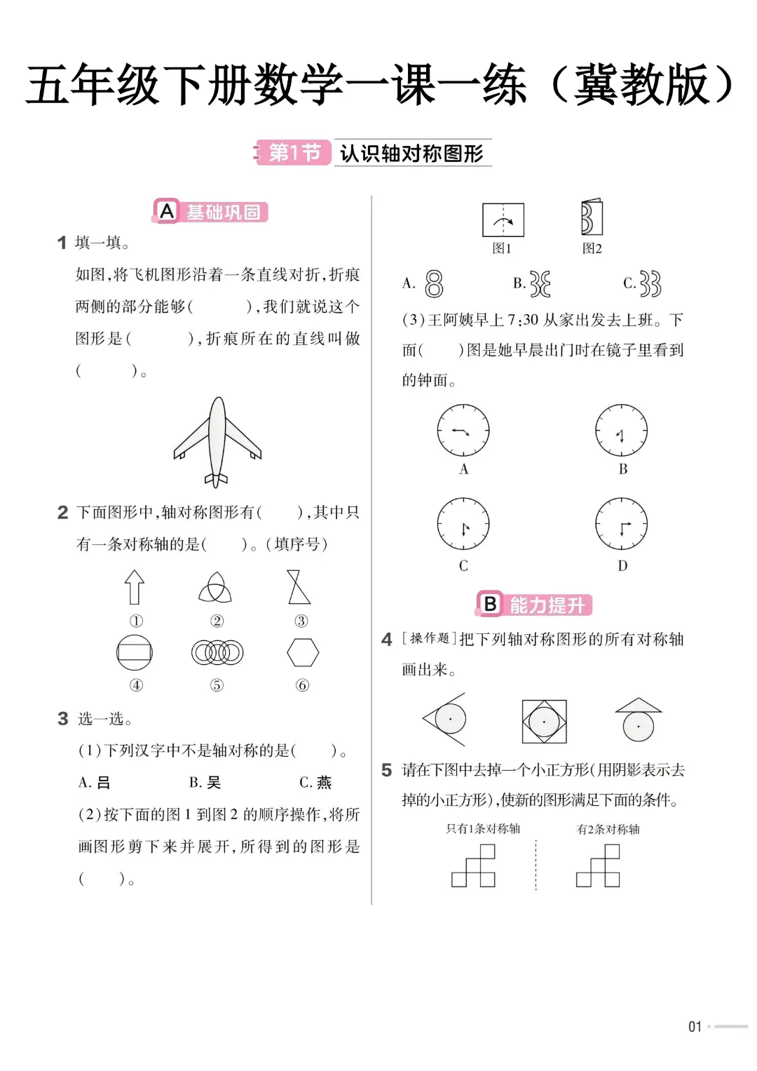 【五年级下册数学】【冀教版】 一课一练带答案|完整高清电子版
