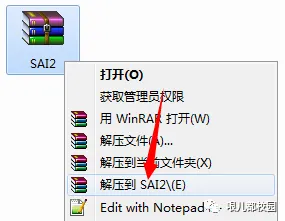 1.鼠标右击软件压缩包,选择“解压到 SAI2”
