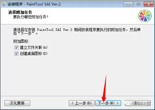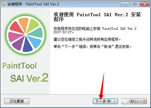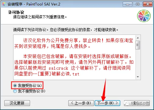 8.选择“PaintTool SAI Ver.2 简体中文版”的“破解版”,然后点击“下一步”
