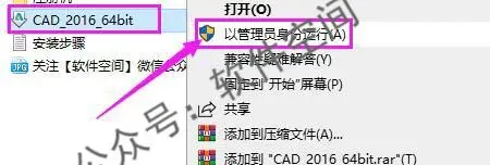 2、双击打开解压后的软件文件夹,鼠标右键【CAD_2016_64bit】选择【以管理员身份运行】